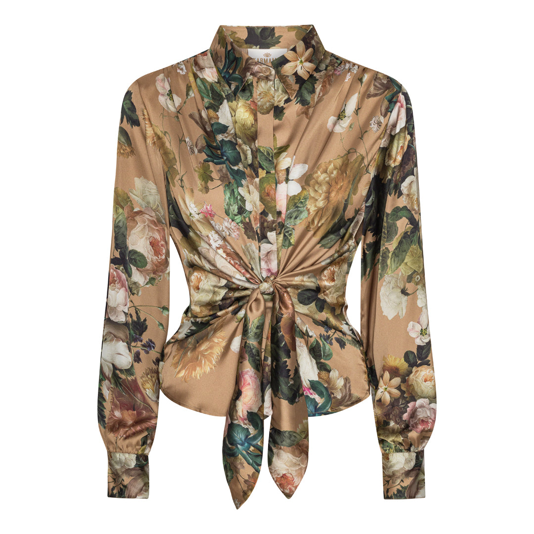 Smuk skjorte fra Karmamia. Skjorten har lange ærmer, krave samt den fineste detalje foran i form af et bindebånd der let markerer taljen.