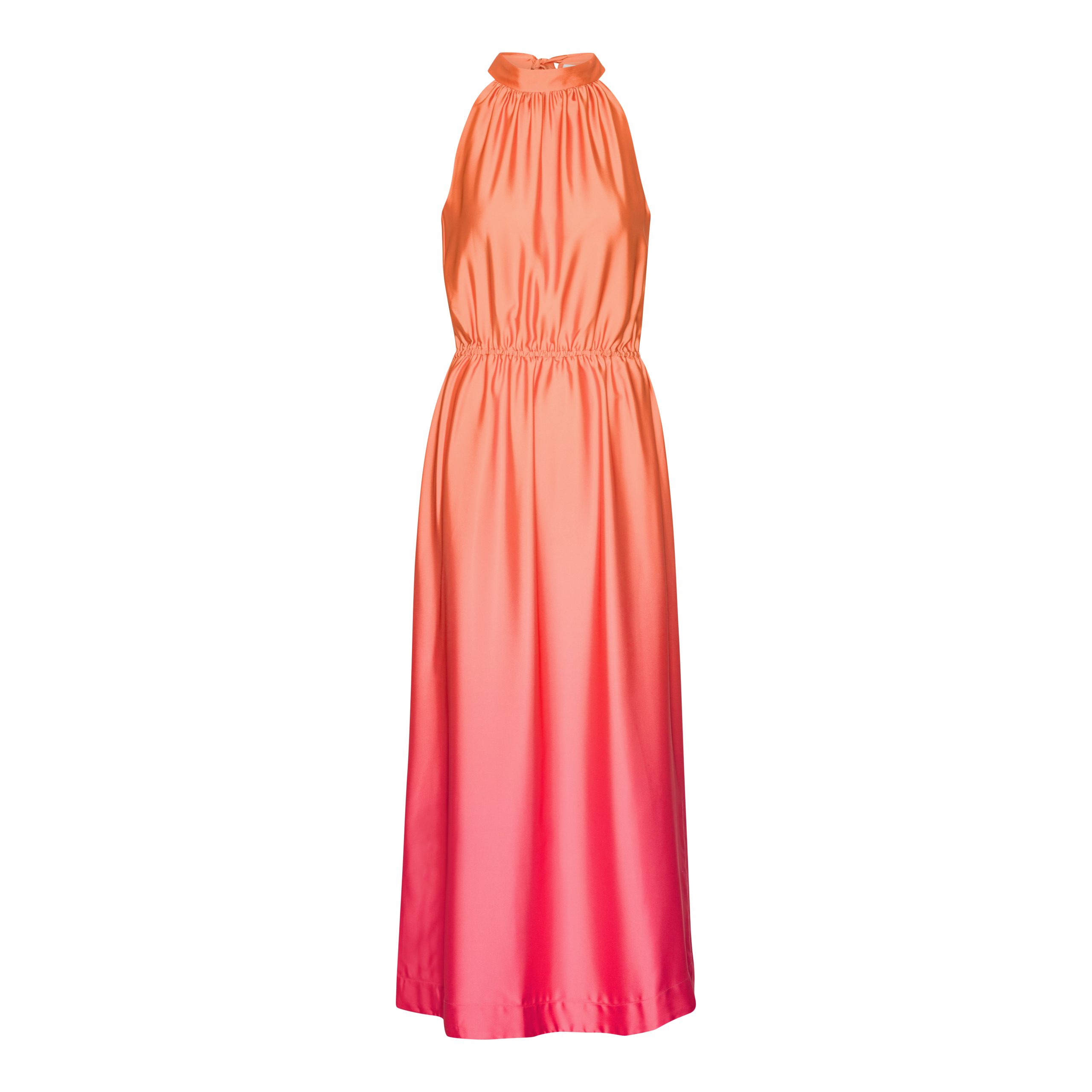 Elegant halterneckkjole med en smuk gradient punch farve fra Karmamia. Kjolen har en elastisk i taljen, som giver en smuk pasform.