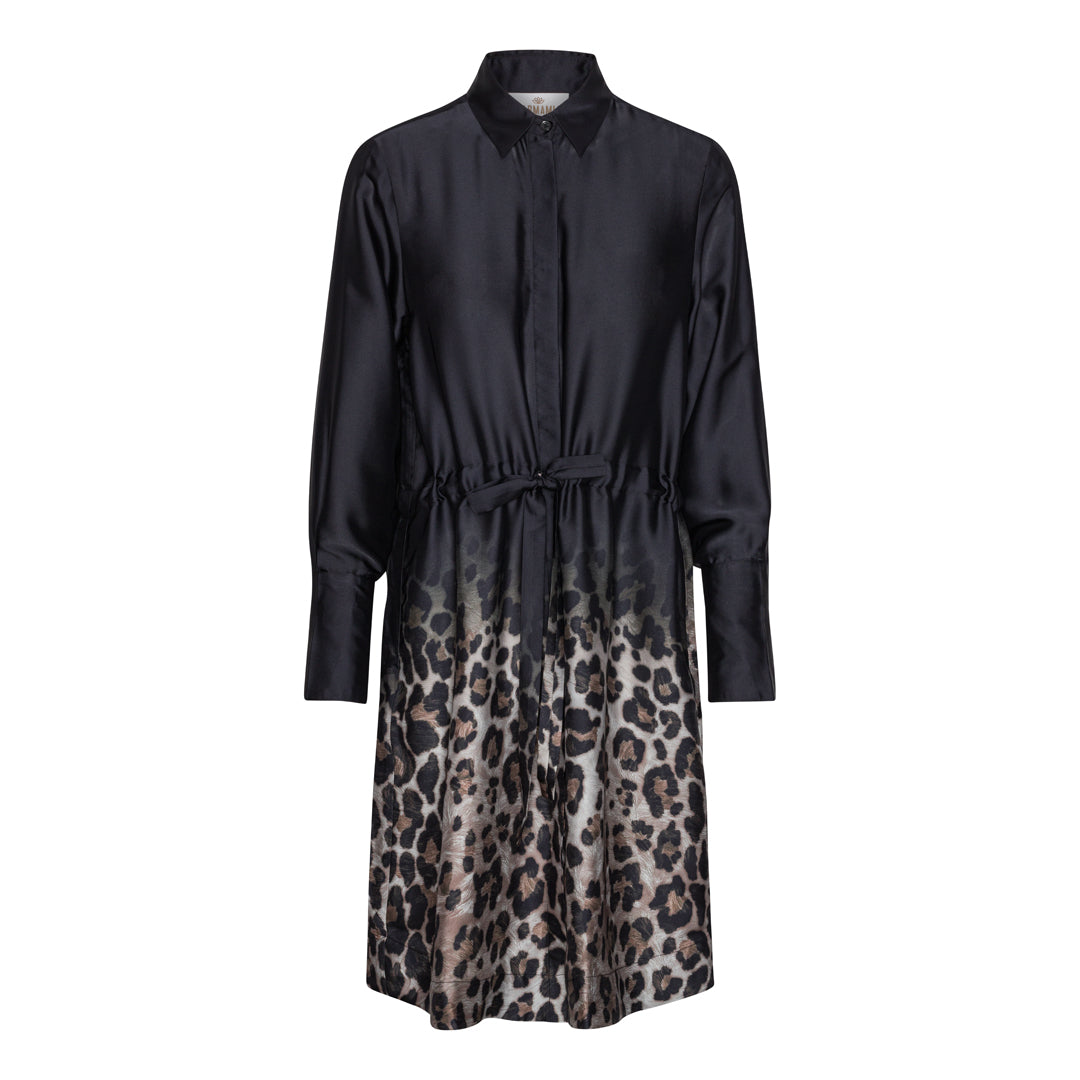 Nakita -kjolen har en skjortekrave og knap foran, der minder om en klassisk kjoleskjorte og slutter med lange ærmer og en bred manchet. Lavet med maskinvaskbar satin, der er miljøvenlig og blød på kroppen.