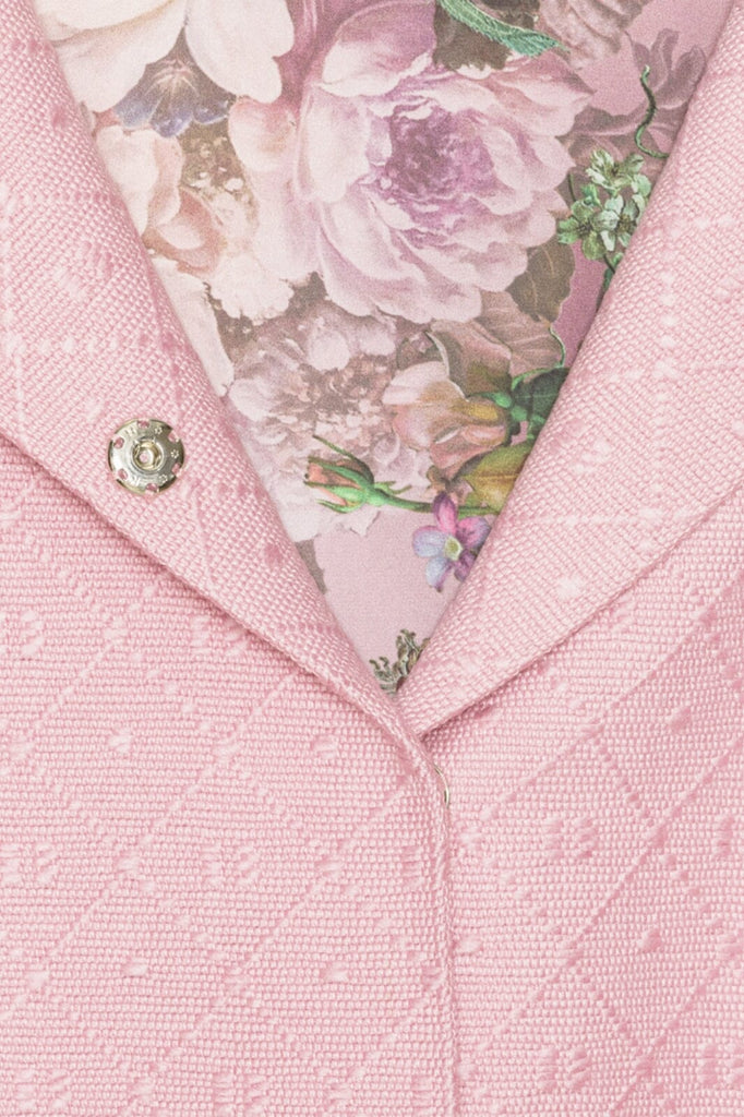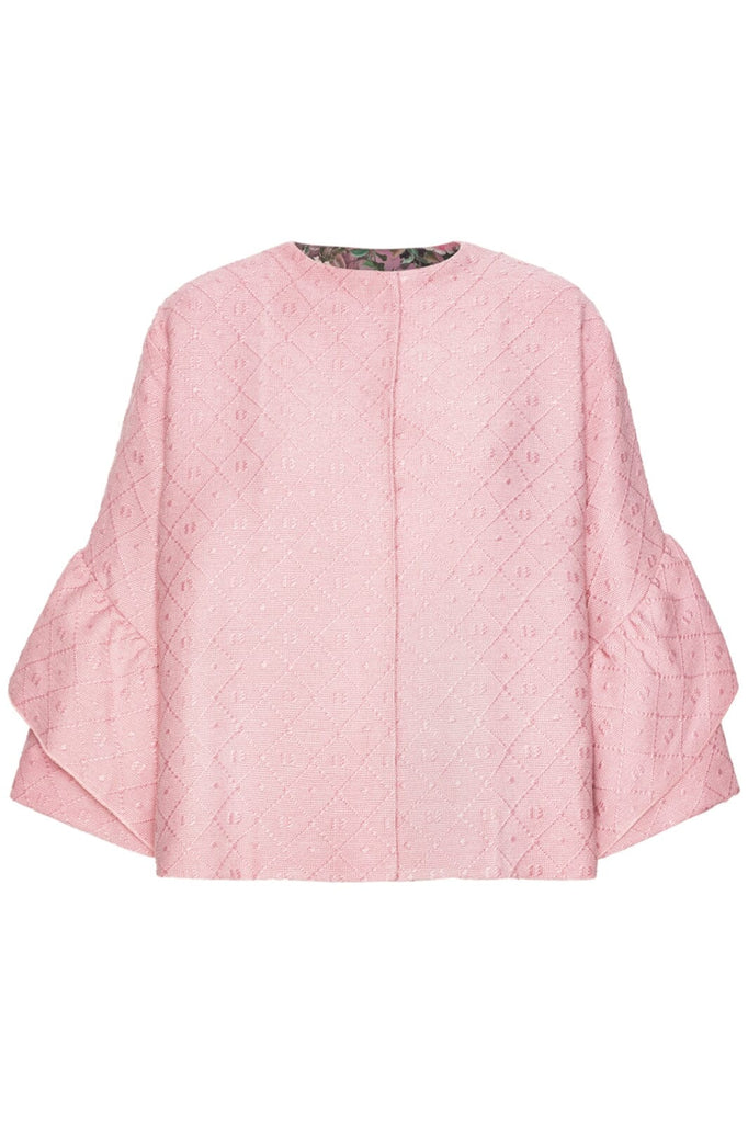 Spencer-jakken er en limited edition med kun få stykker tilgængelig i forskellige kombinationer af mønstret eller ensfarvet inderlag og uldent yderlag. Det indvendige lag er lavet af blødt og behageligt satin, mens det yderste lag er lavet af uld. Ærmerne er med peplum med flæser i flere lag og tilføjer et ekstra strejf af mode til Spencer-jakken.