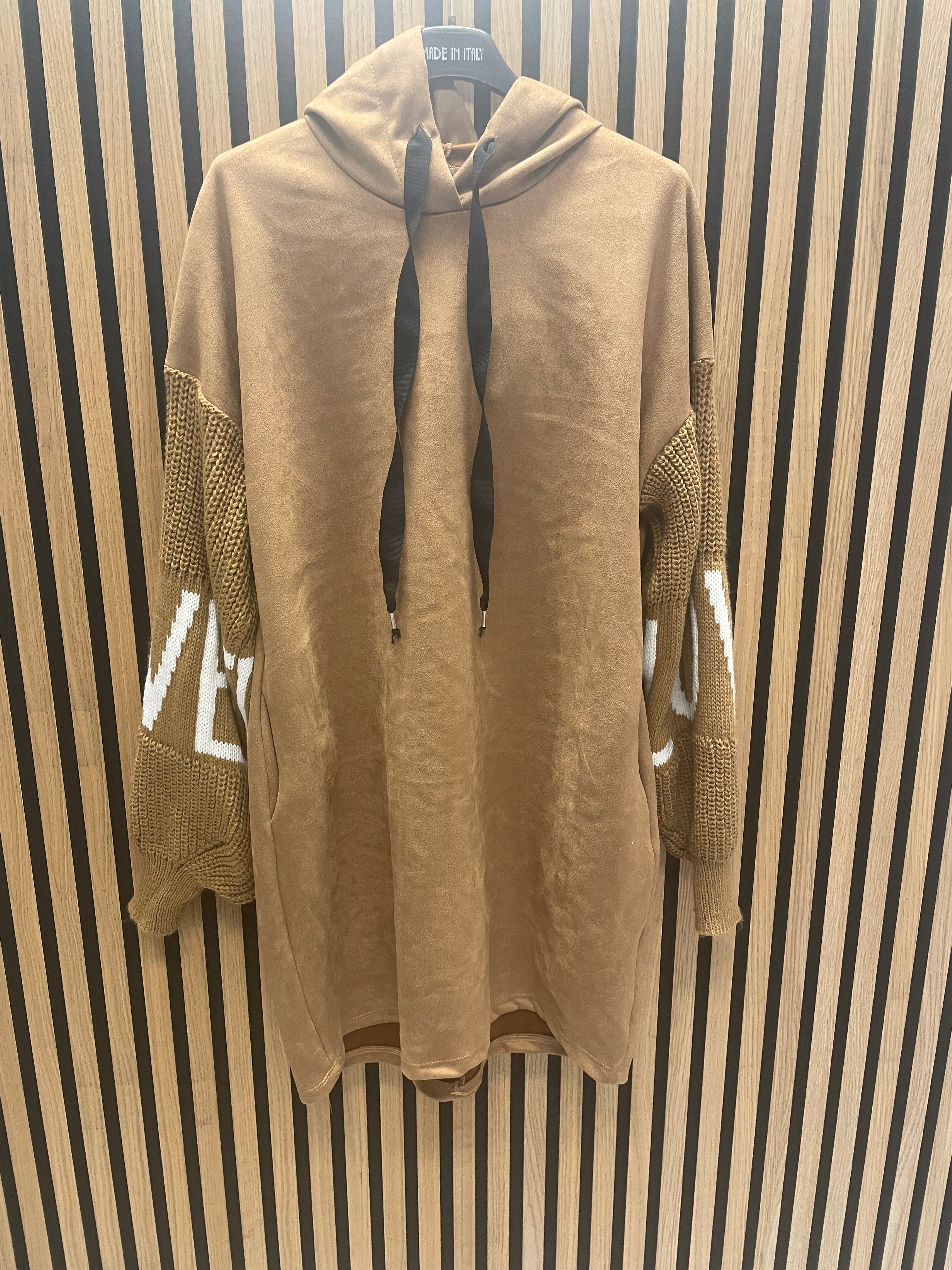 Cool lang sweatshirt fra vores nye brand. Kommer i en lækker kvalitet med strikærmer og hoodie.