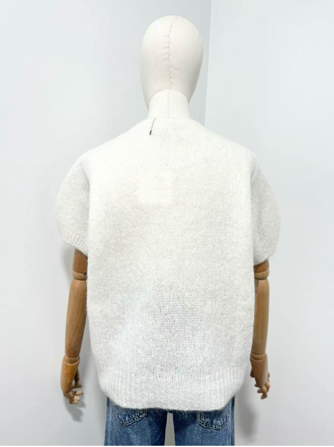 En fluffy mohairstrik med en utrolig blød fornemmelse, let som en sky. Det fjerlette materiale giver en varm fornemmelse, samtidig med at det forbliver luftigt. Den skiller sig ud med sine korte pufærmer, som skaber en smuk volumen og en feminin silhuet, samt sin tidløse runde halsudskæring, der er nem at bruge til hverdag.