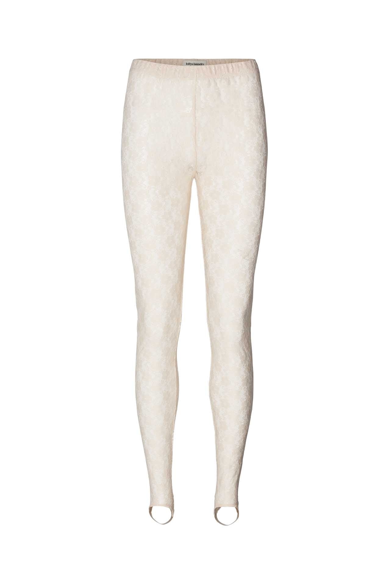 Top cool leggings i creme farvet. Der er masser af stræk i, en elastik i taljen, og elastik om fødderne.