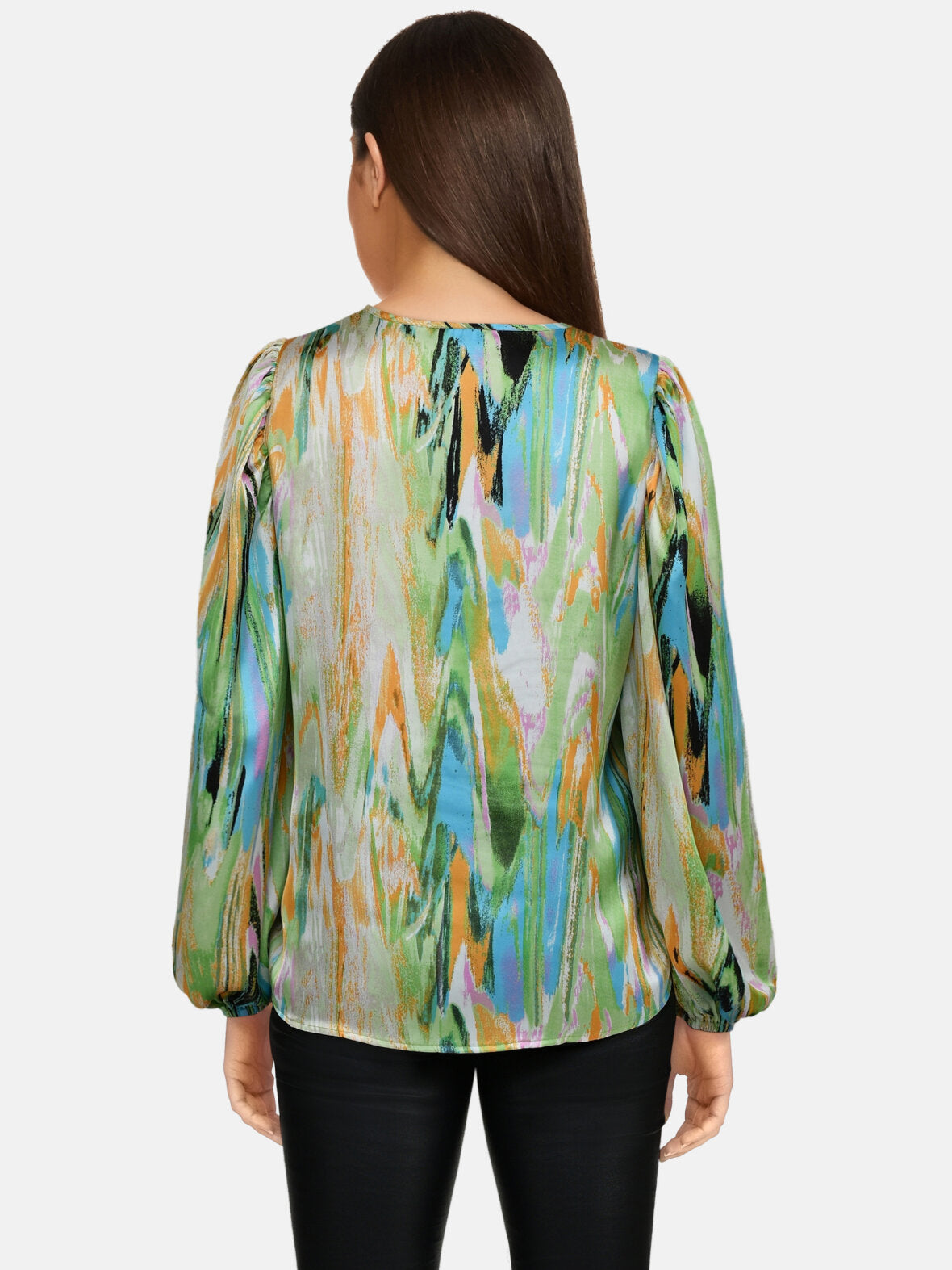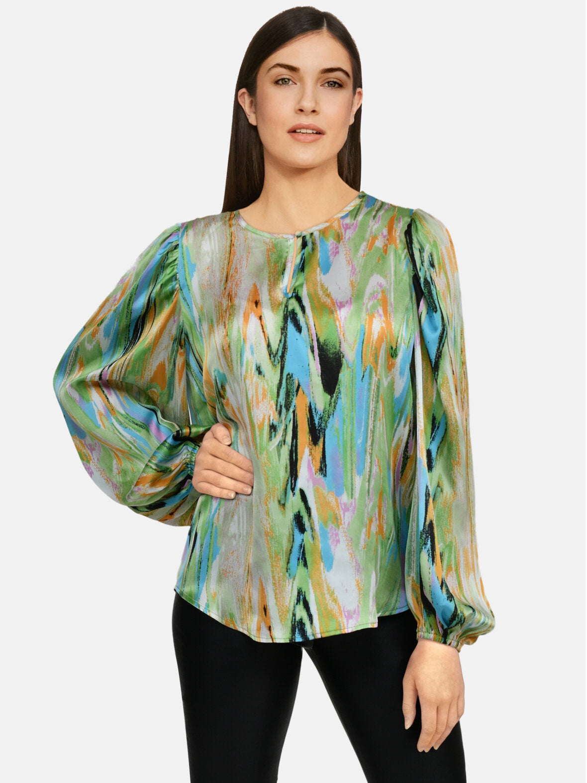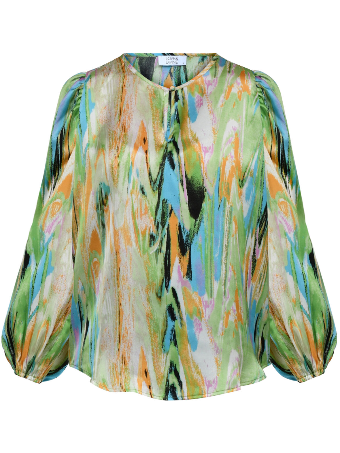 Flotteste bluse fra Love & Devine. Blusen har rundhalsudskæring, længe ærmer med elastik elastikafslutning og kommer i et flot farvespil.