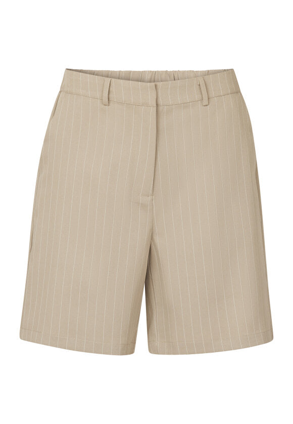 Fede shorts fra Love & Divine i en smuk sandfarvet med pinstripe. Shortsene har en løs pasform og elastik i taljen.