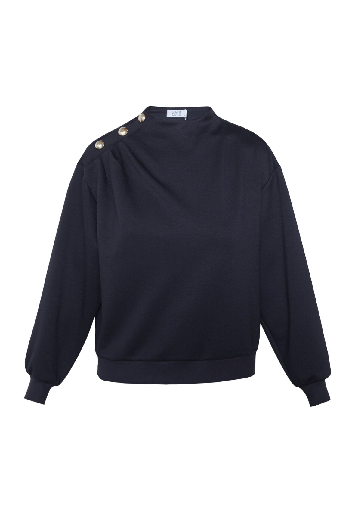 Den blødeste sweatshirt med guldknapper og læg på den ene skulder. Med turtleneck og rib-afslutning ved ærmer og forneden.