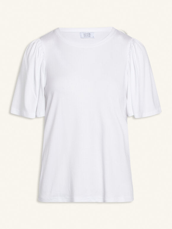 Cool t-shirt i en lækker kvalitet fra Love & Divine. Med lette pufærmer og en løs pasform.