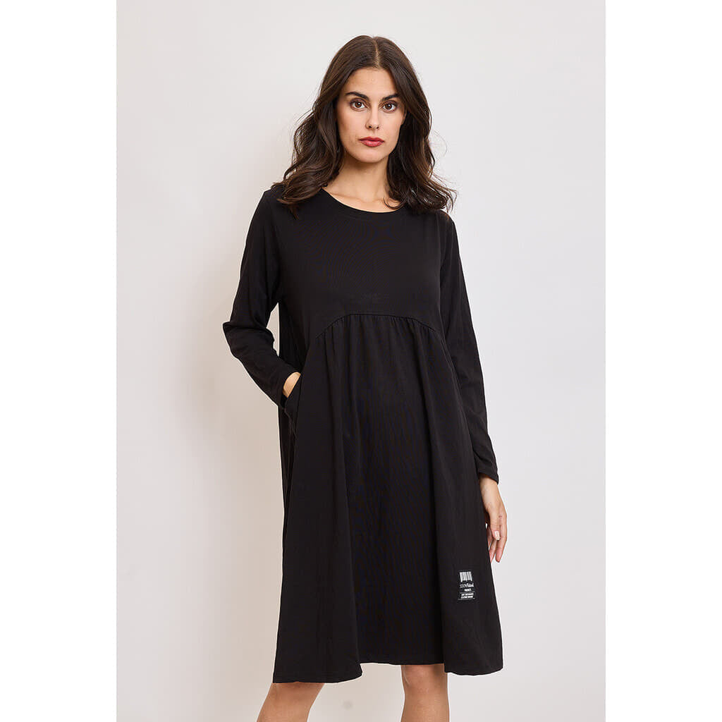 Cool kjole fra Love Sophy i bomuld. Kjolen går til knæene, har rund halsudskæring og lange ærmer og så er der lommer i siderne.