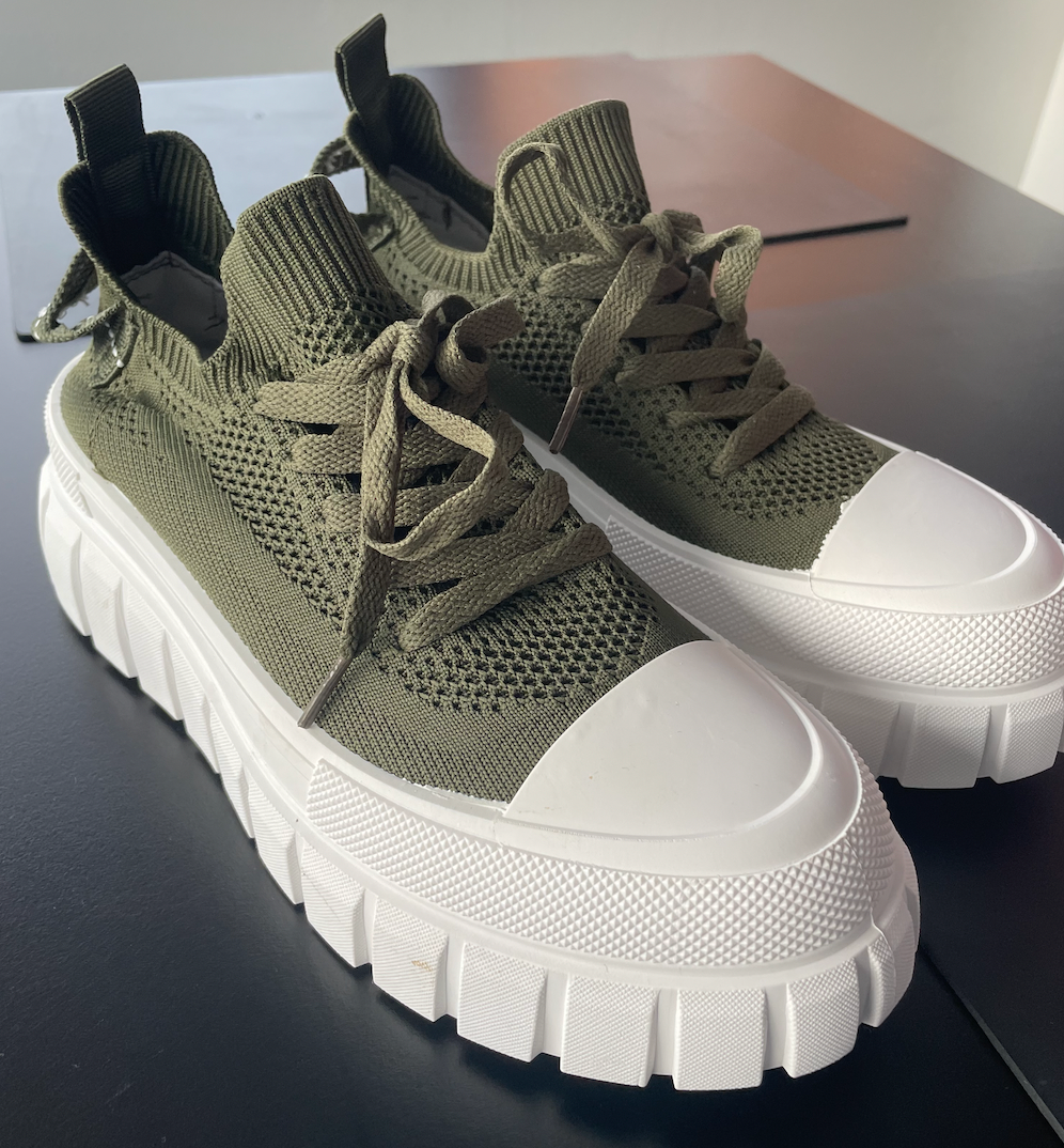 Cool sneak fra Love Sophy i den fineste army farve med høj hvid bund.