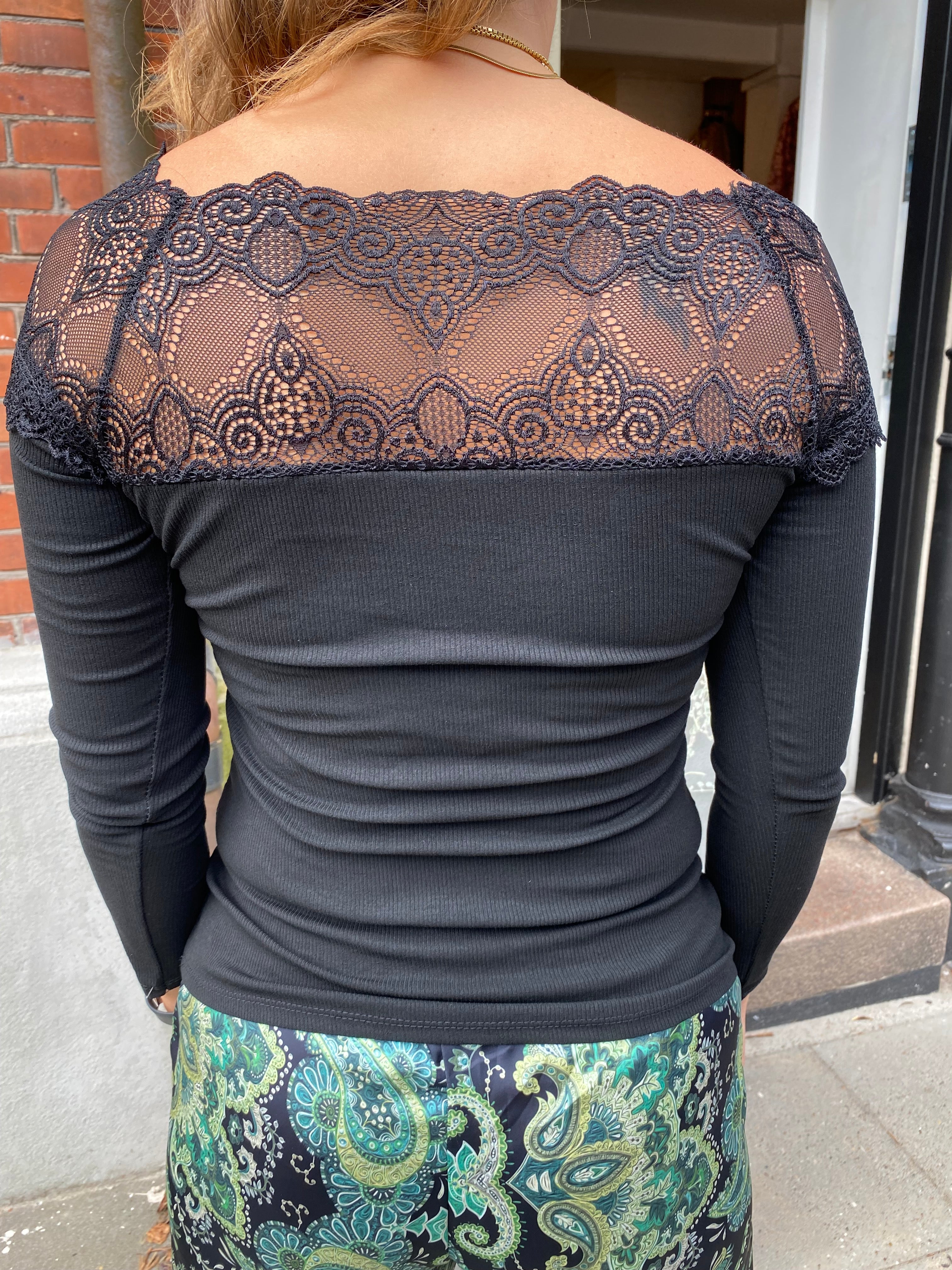 Super skøn bluse fra Love Sophy i viskose. Blusen er med blonder, bred udskæring og lange ærmer.