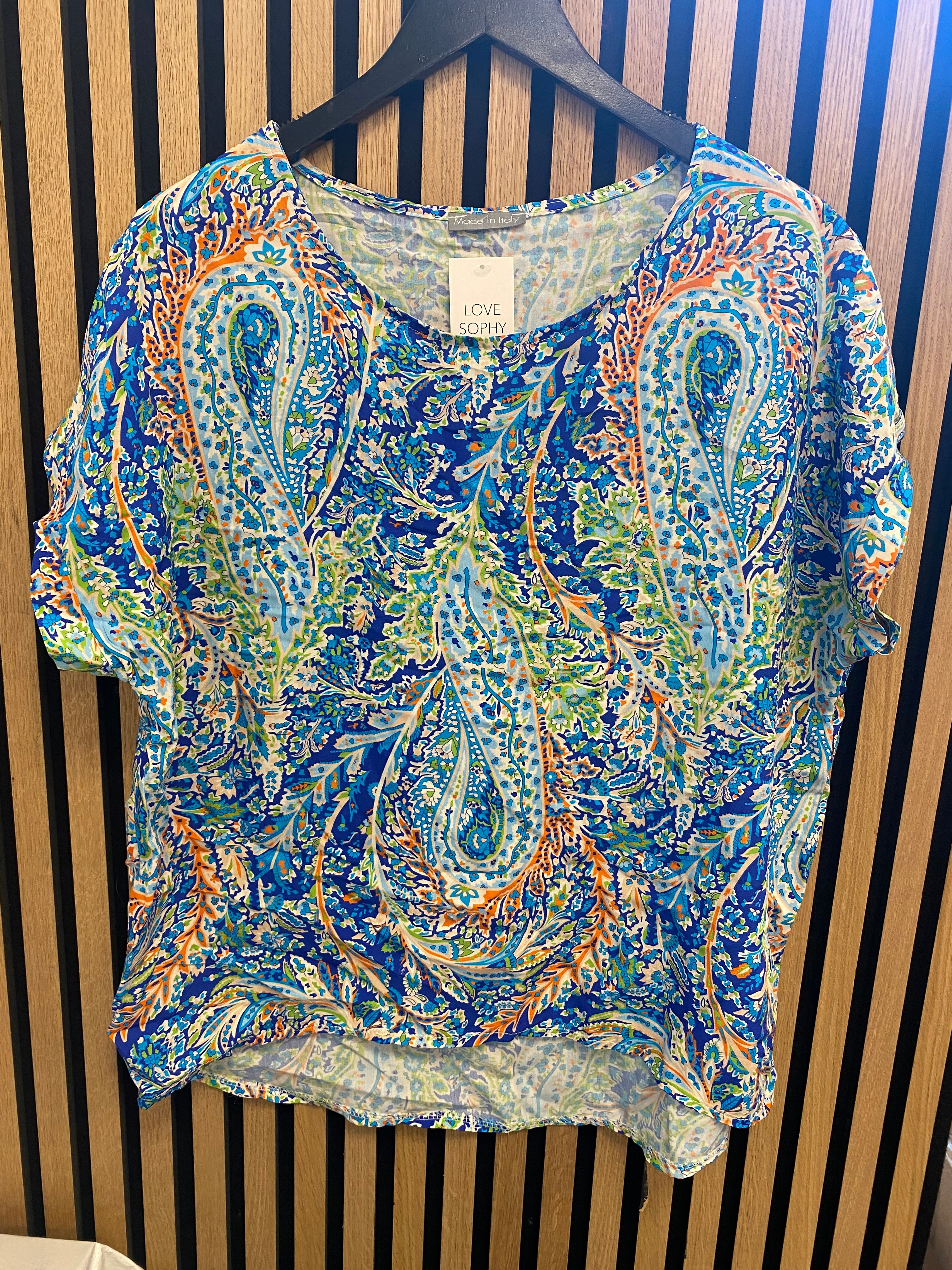 Skøn let bluse fra Love Sophy i det fineste blå mønster. Blusen har korte ærmer.