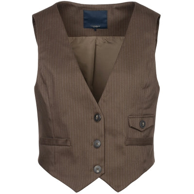 Super cool vest fra Luxzuz med diskret pin-stripe mønster. Yderstoffet er af bomuld, hvilket giver vesten et råt look. Vesten har 3 knapper samt paspolerede lommer.