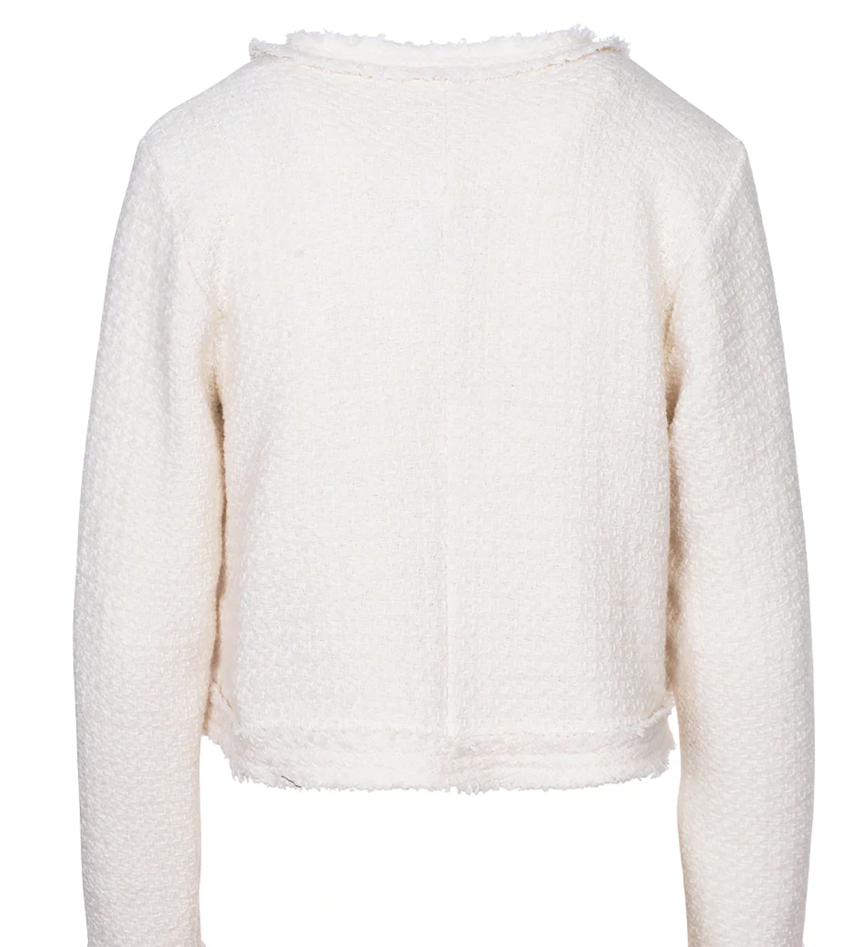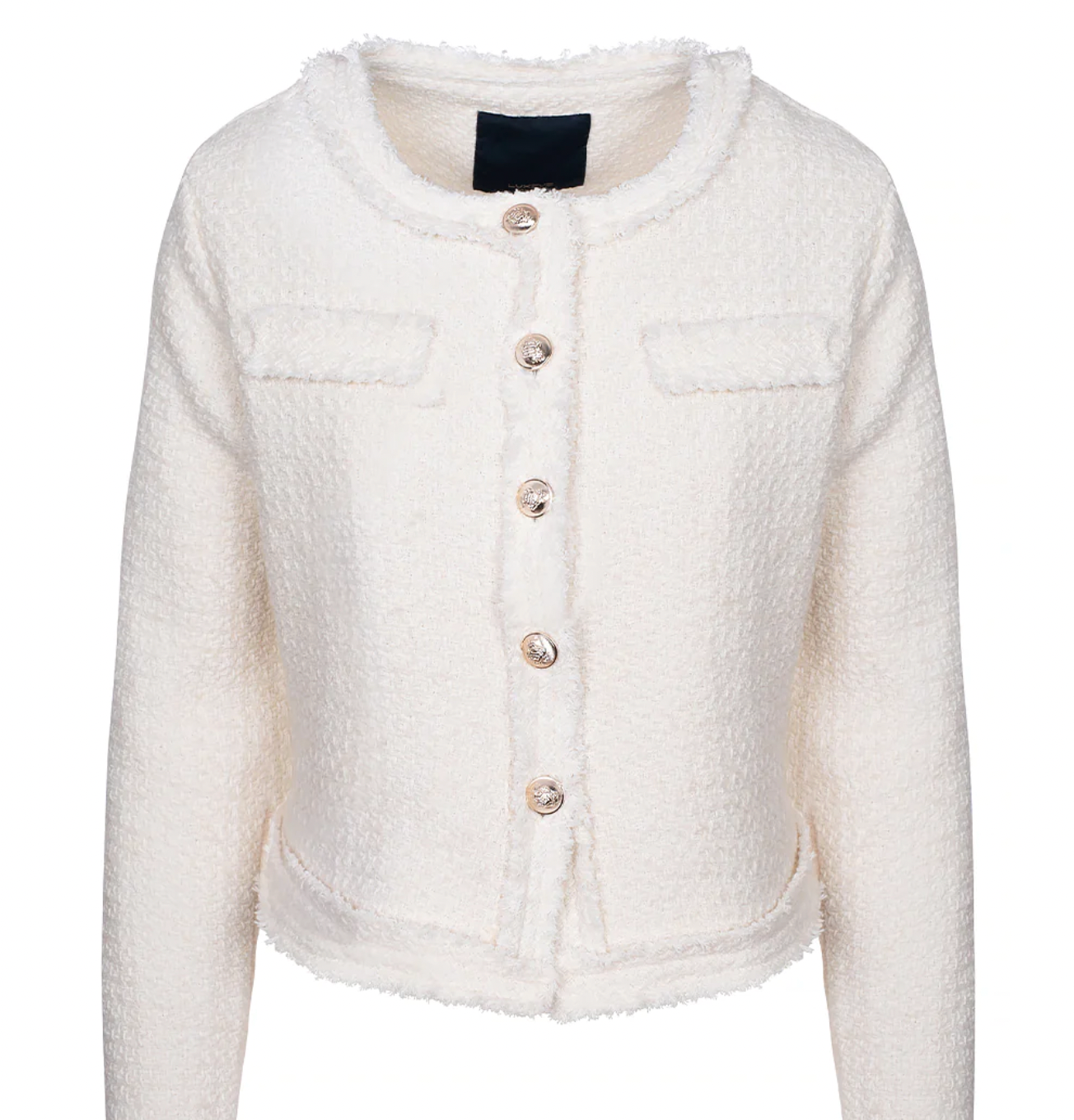 Den fedeste boucle jakke fra Luxzuz. Jakken har snyde lommer på brystet, lange ærmer og store guldfarvet knapper fortil.