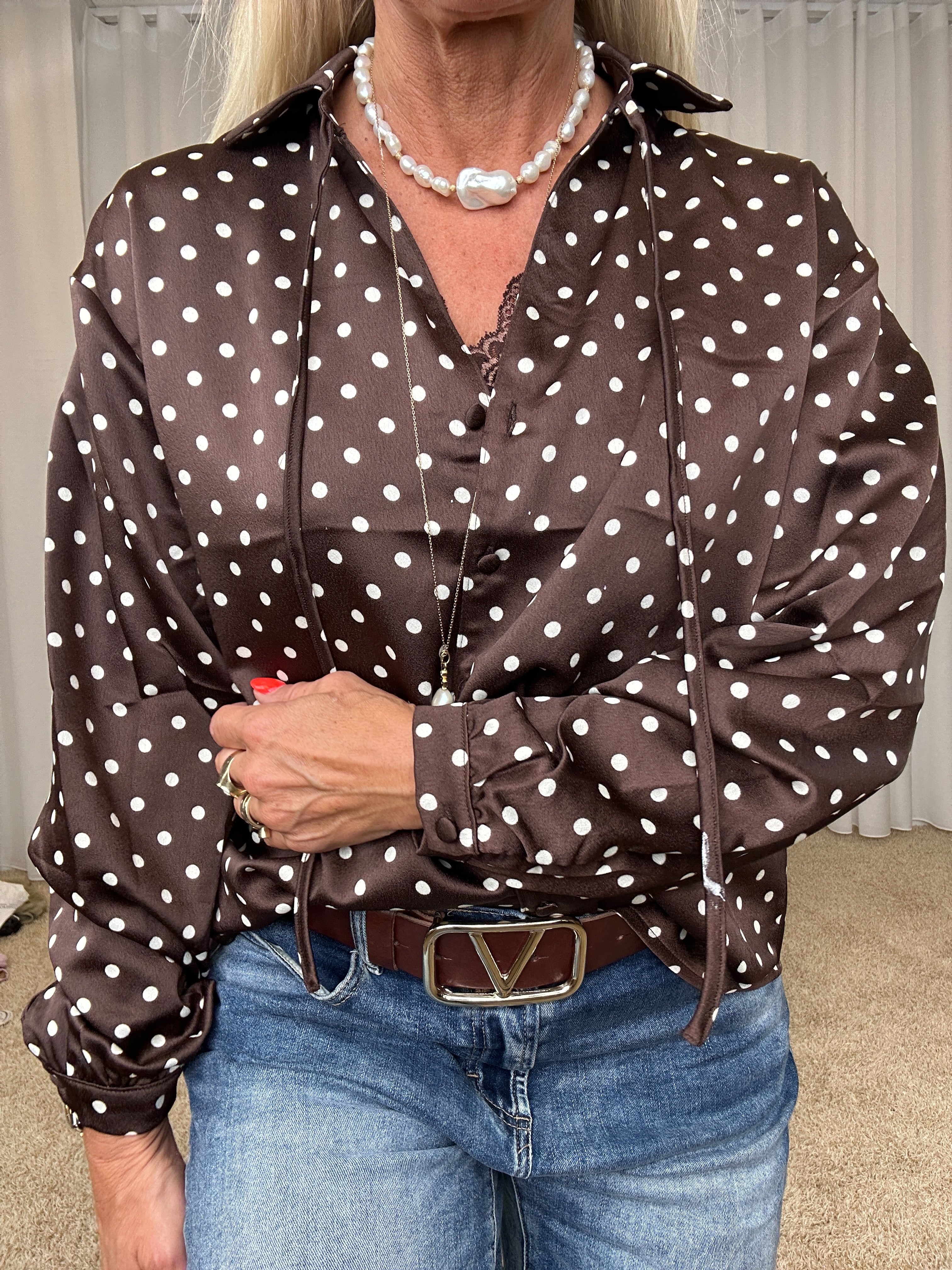Smuk bluse fra MBYM med lange ærmer, krave og smuk åbning foran.