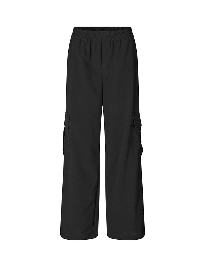 Cool cargobukser fra mbyM i sort. Bukserne har elastik i taljen, lommer på siderne og kan justeres ved anklerne.
