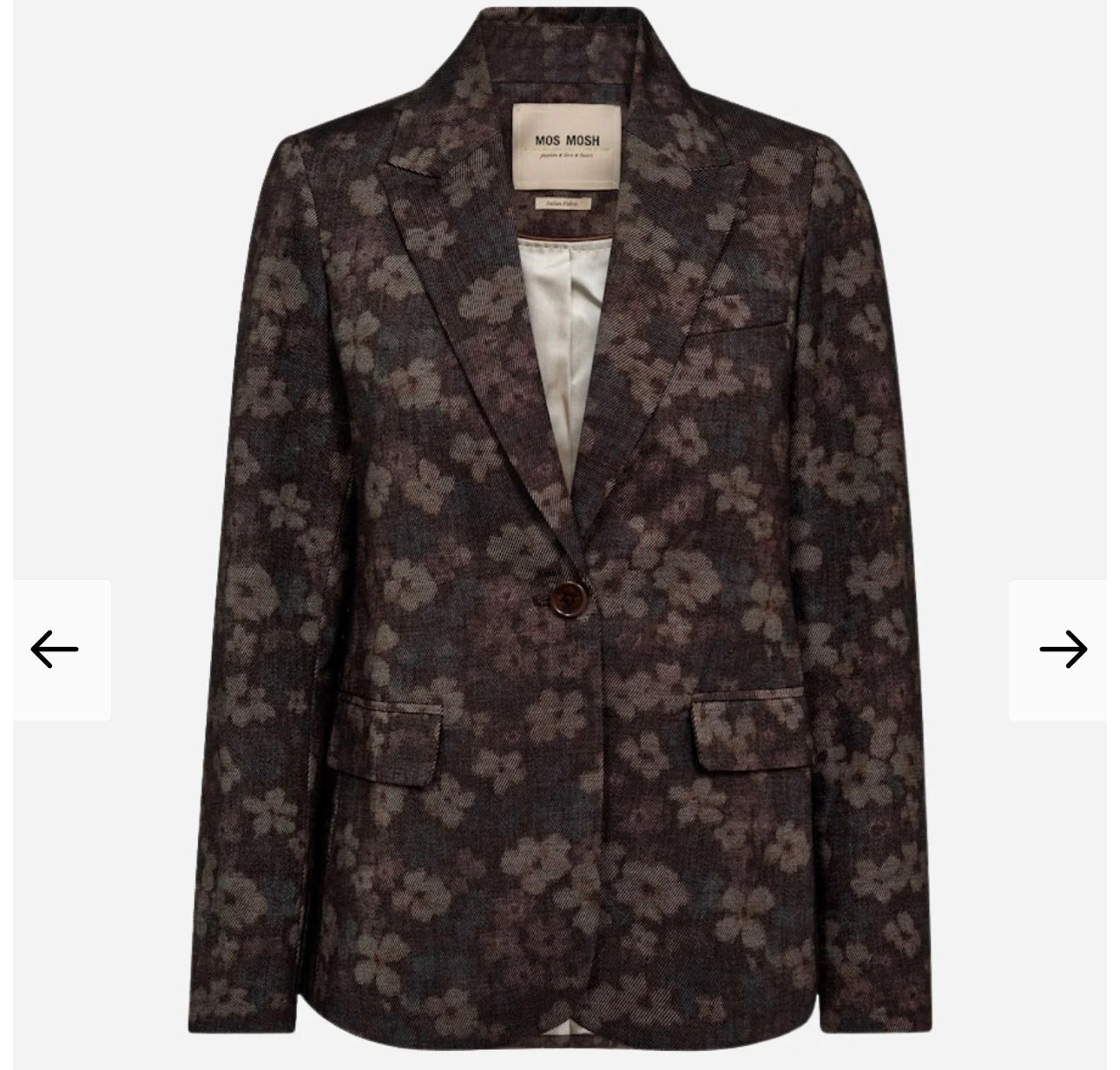 Denne elegante blazer er designet i en regulær pasform og prydet med et smukt blomsterprint, der tilfører et raffineret og feminint touch. Det enkeltradede design, knappede manchetter og funktionelle lommer skaber en klassisk elegance med et moderne twist. Kombinér den med skræddersyede bukser for et stilfuldt look eller med denim for en afslappet, sofistikeret stil.