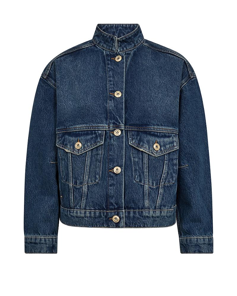 Den sejeste klassiske denimjakke fra Mosh Mosh med en cool broderings detalje på ryggen. Jakken har en let oversized pasform og guld knapper.