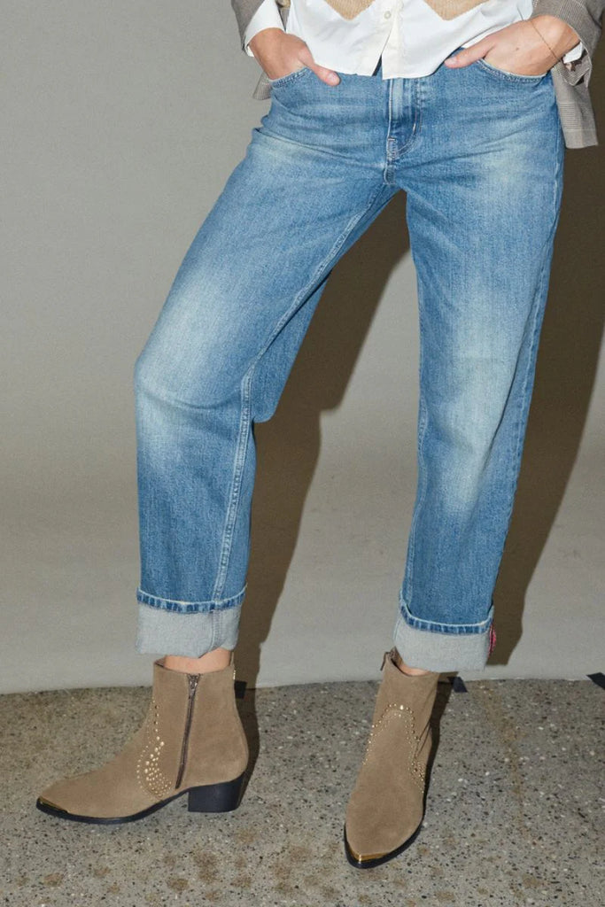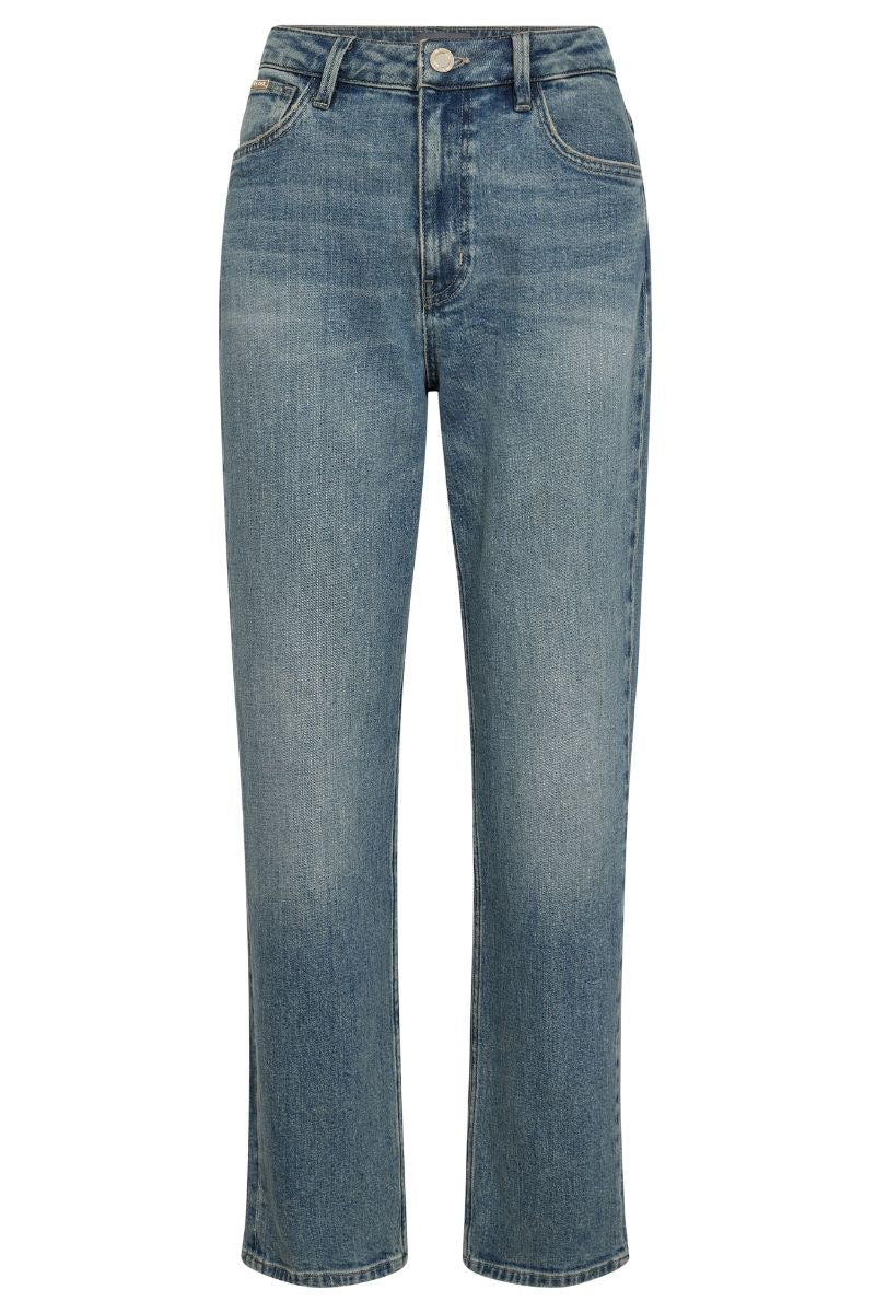 Trendy boyfriend-jeans i en straight pasform og med middel talje fra Mos Mosh. De har et klassisk 5-lomme-design og stilfulde herretøj-inspirerede detaljer, som store opsmøg, læder-patch bagpå og metallogo ved møntlommen.