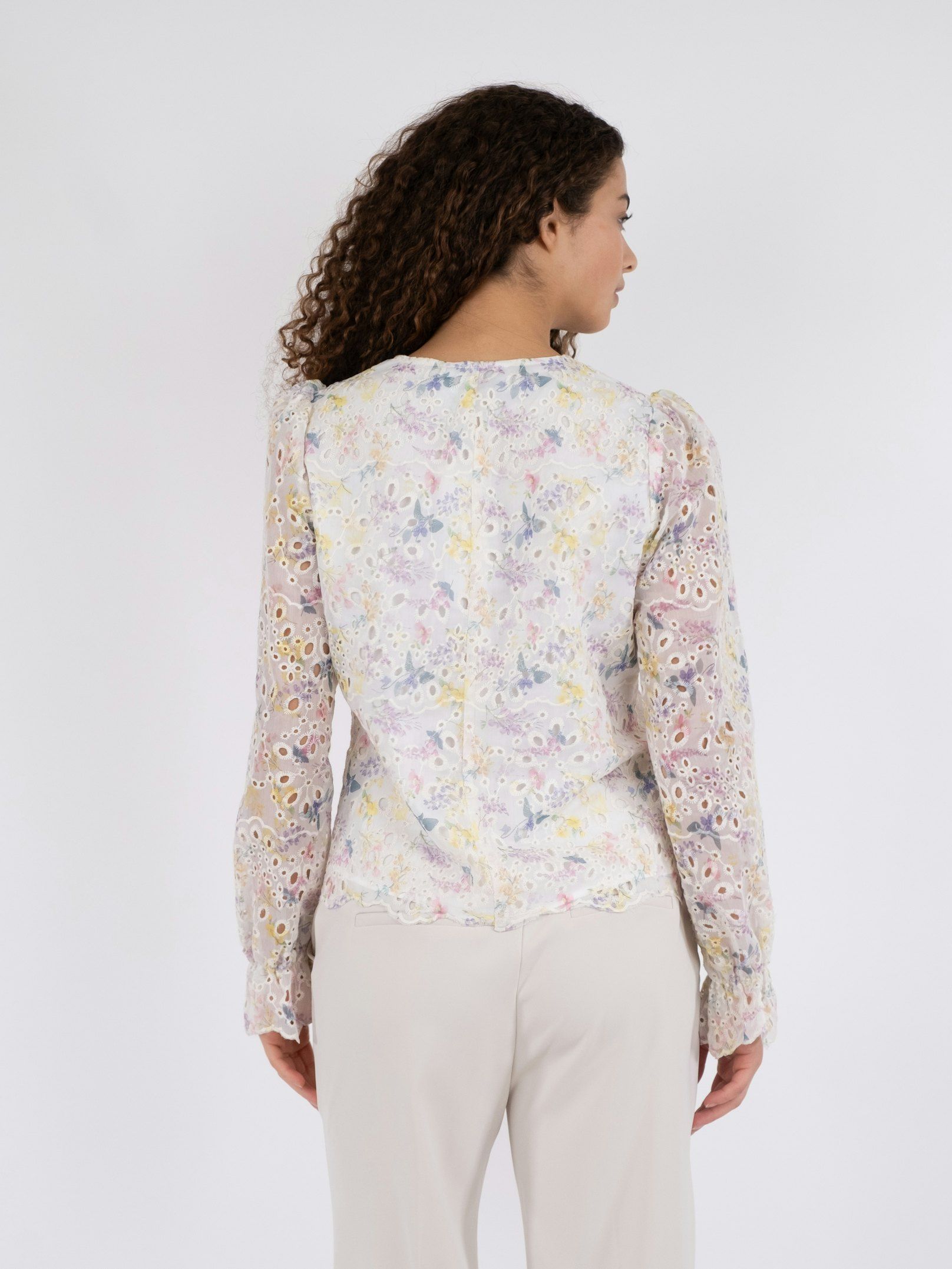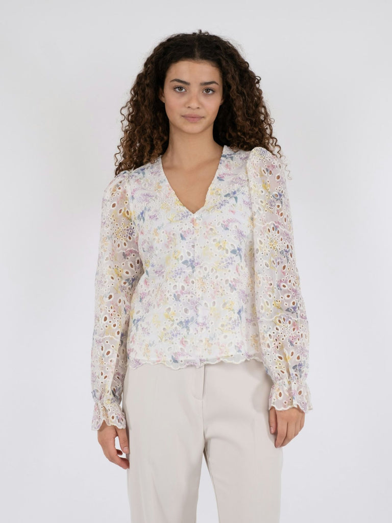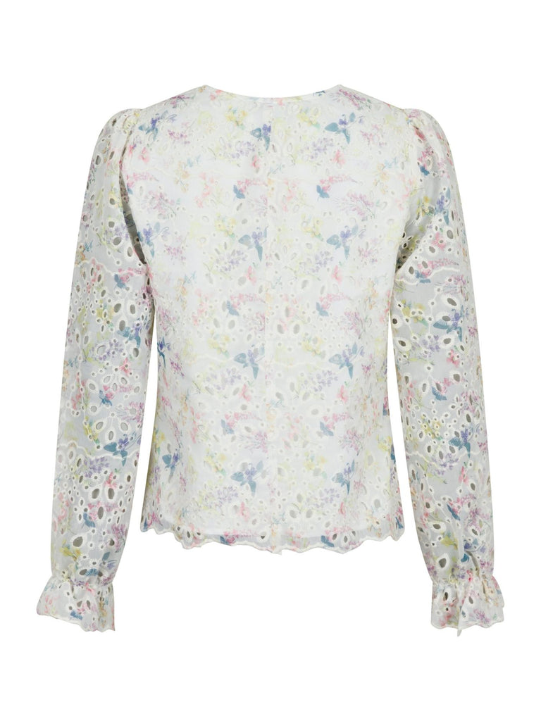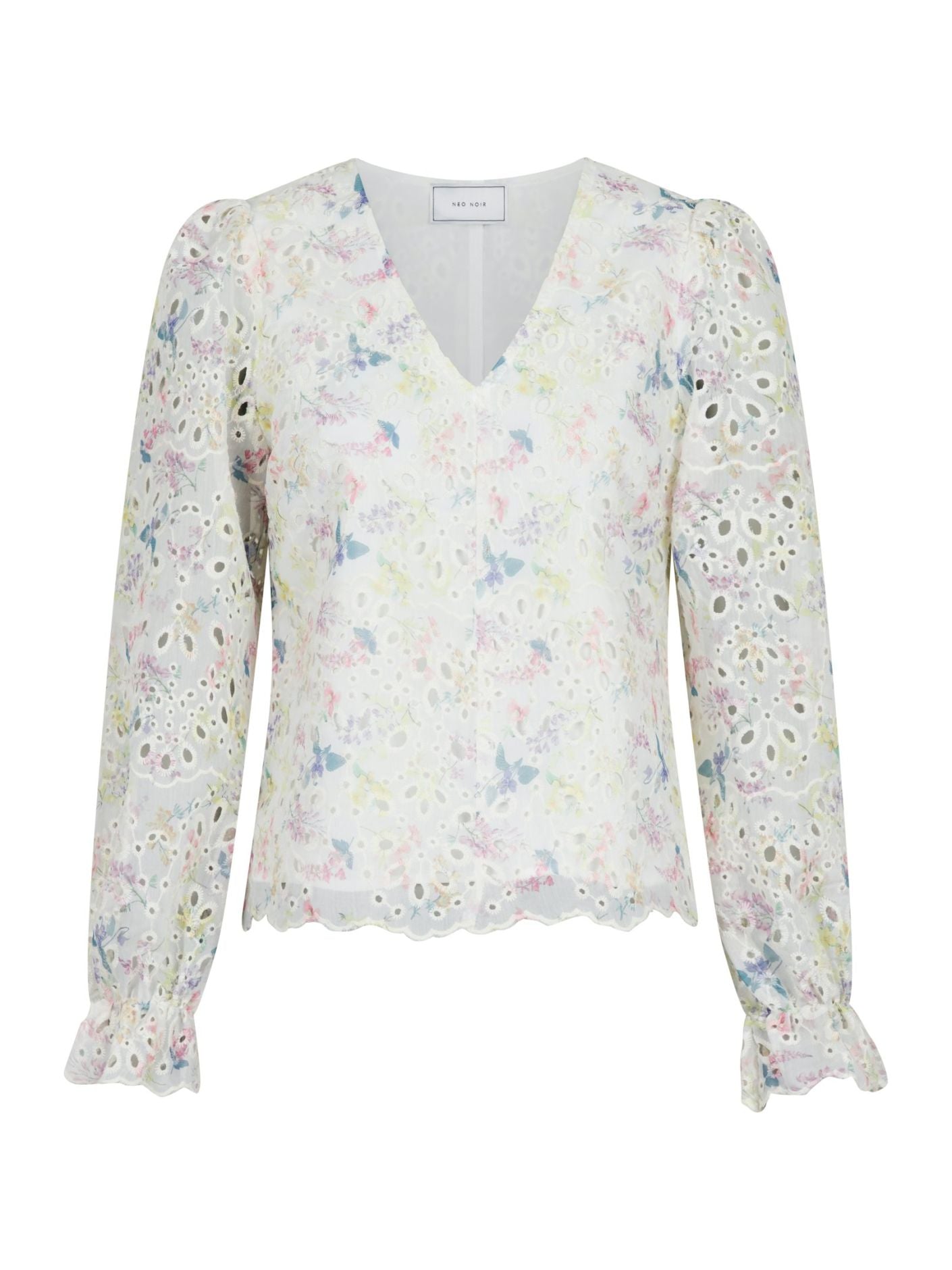 Bluse i broderet kvalitet med print fra Neo Noir. Blusen har lange ærmer som afsluttes med elastik , og pasformen er let figursyet.