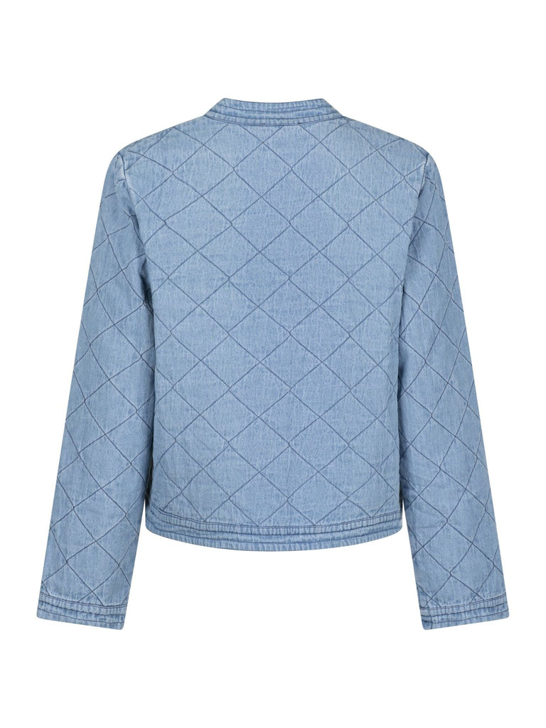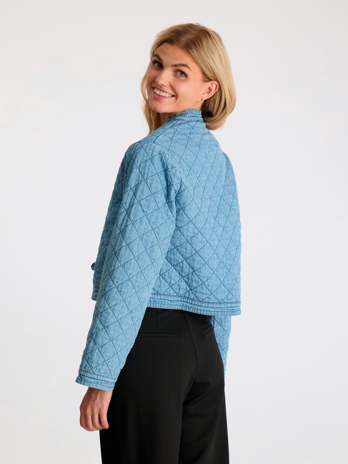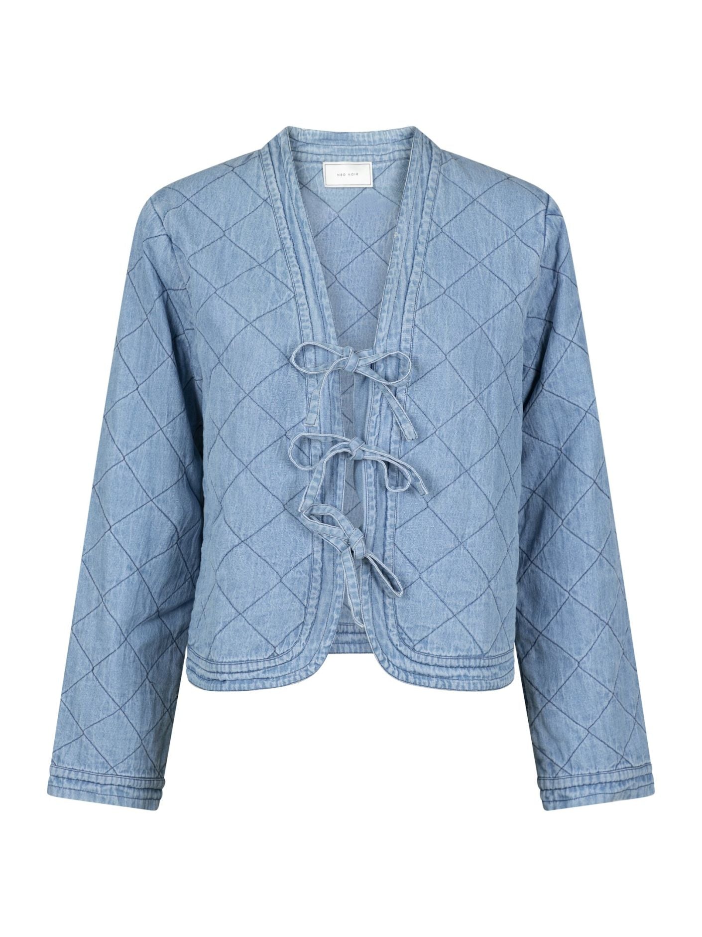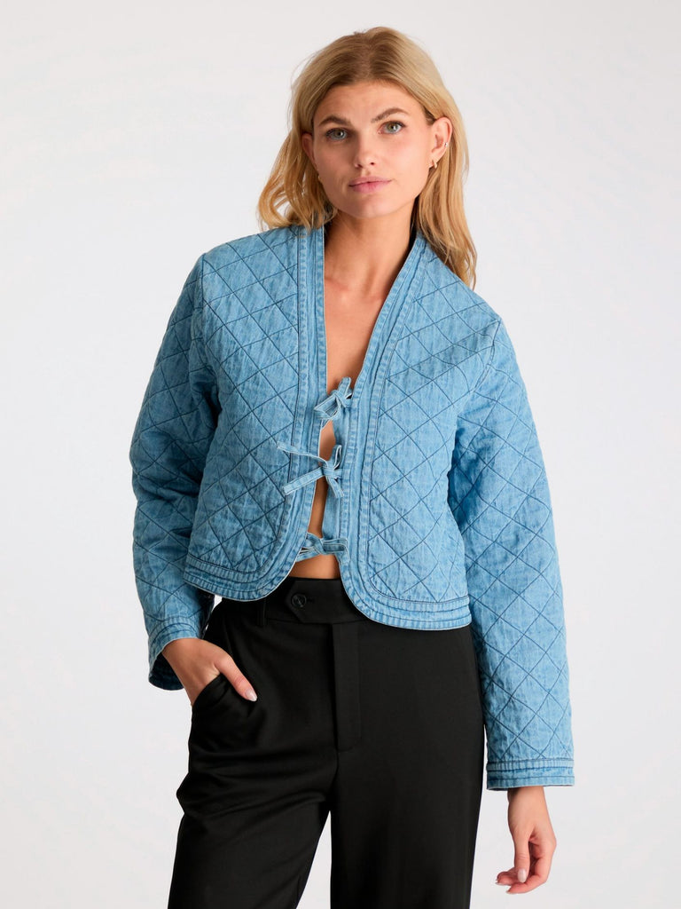 Cool quilt jakke i denim fra Neo Noir. Jakken kommer med fine sløjfe detaljer fortil og har en løs pasform.