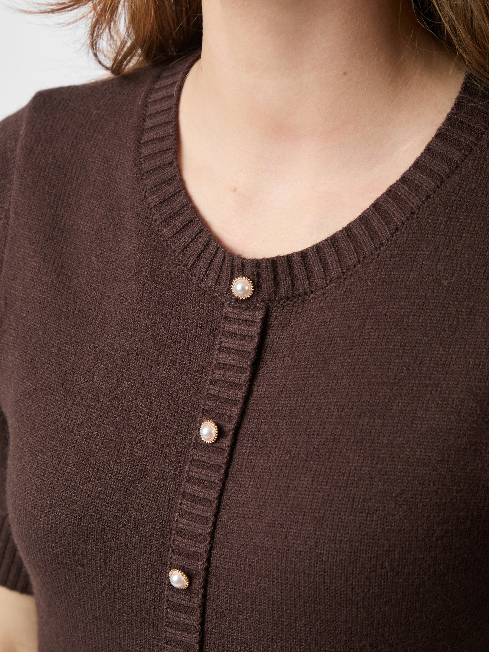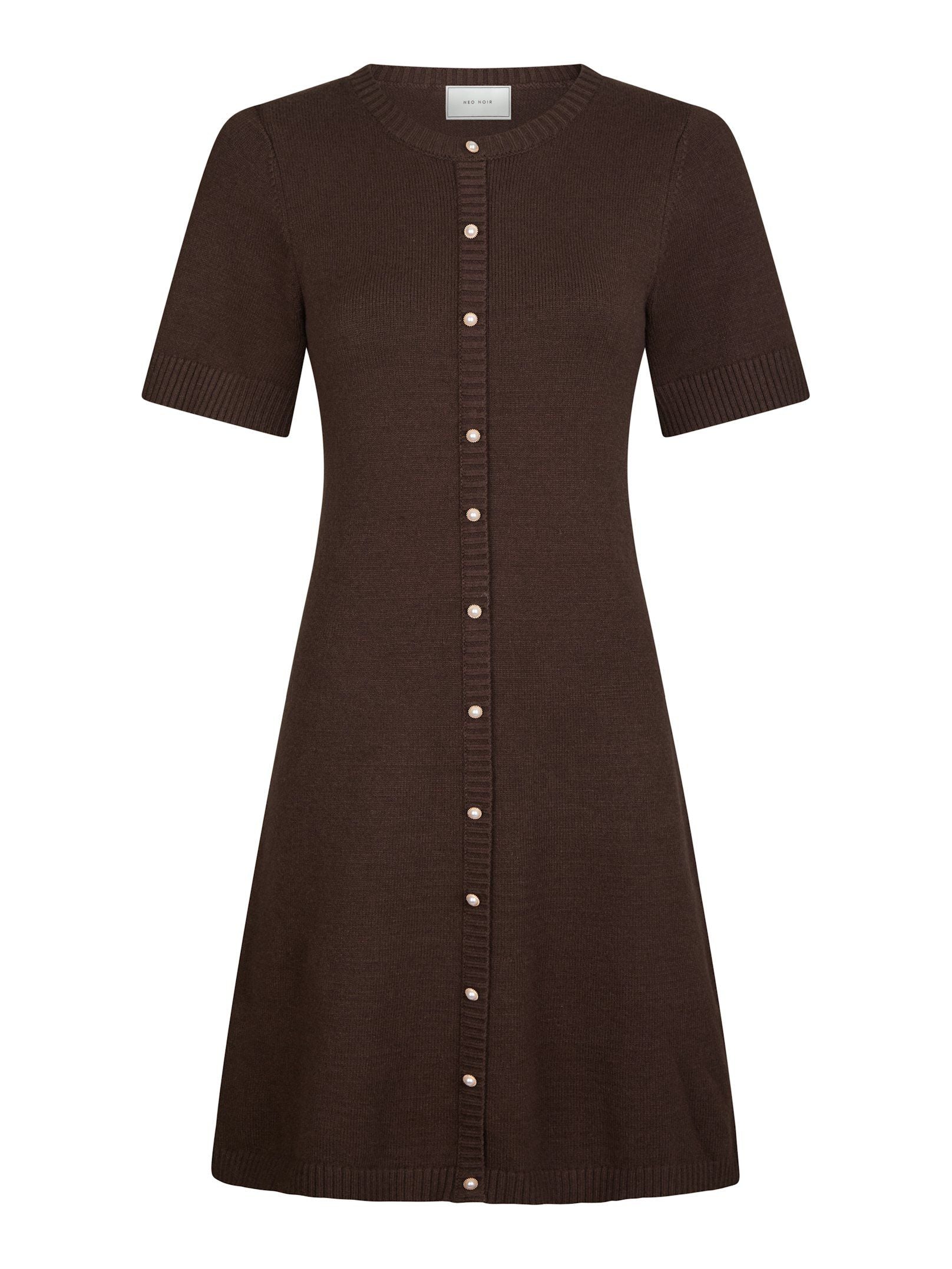 Skøn finstrikket kjole med smukke perleknapper fra Neo Noir.