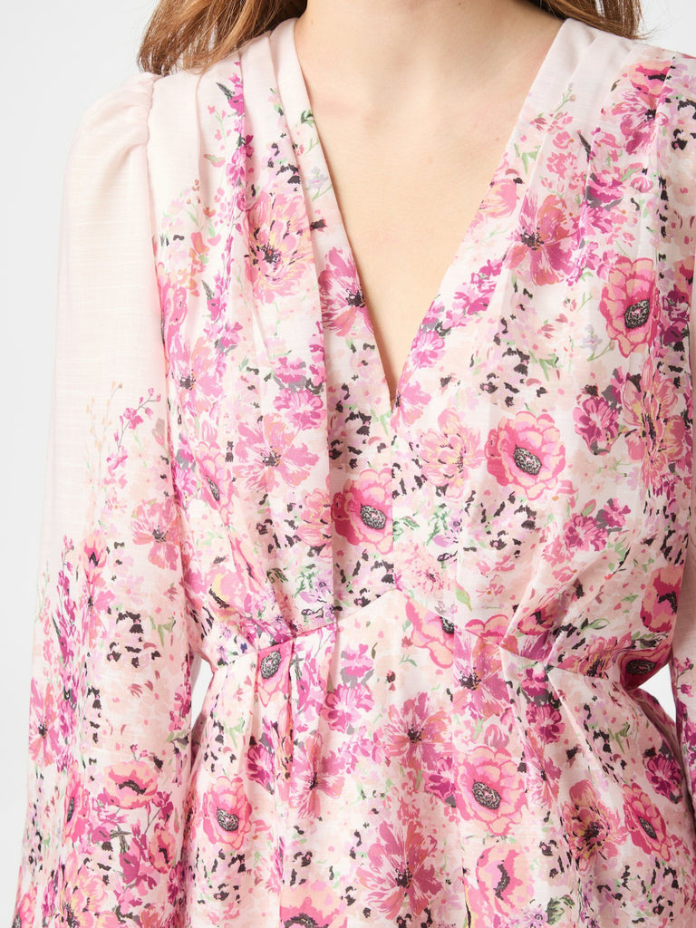 Feminin bluse i et smukt blomsterprint fra Neo Noir. Blusen har elastik i taljen som gør den komfortabel og samtidig flatterende. Ærmerne er lange og afsluttet med elastik.
