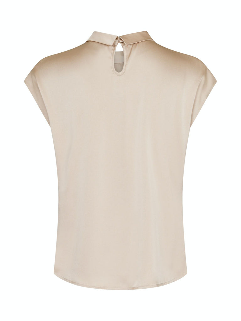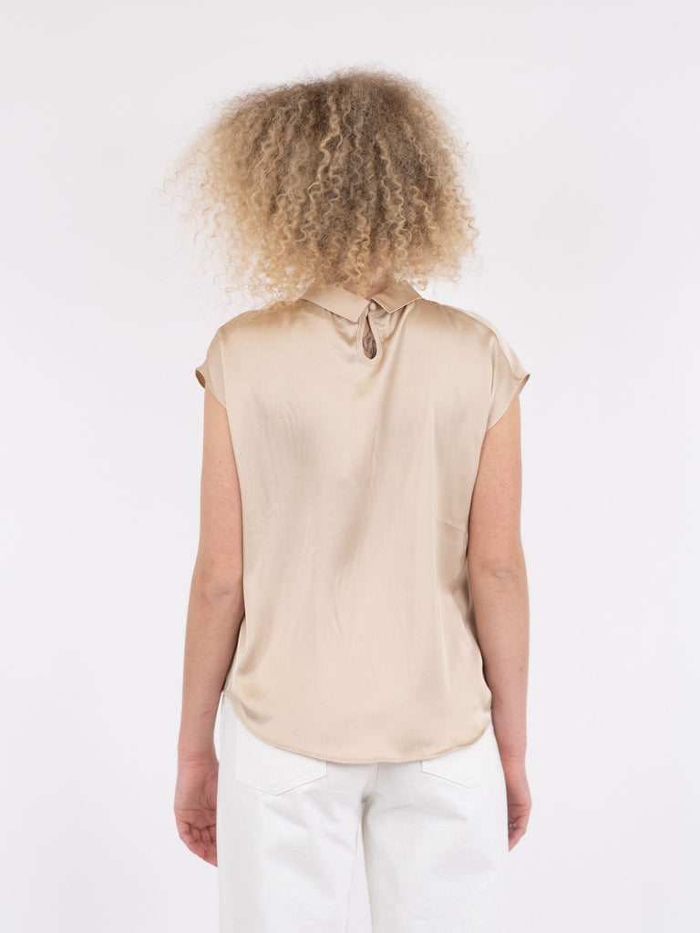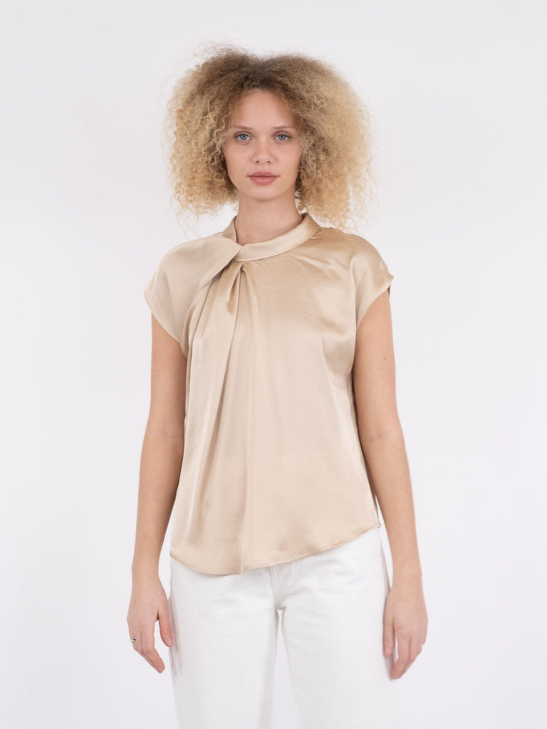 Neo Noir - Fleur Drape Satin Blouse Dark Sand