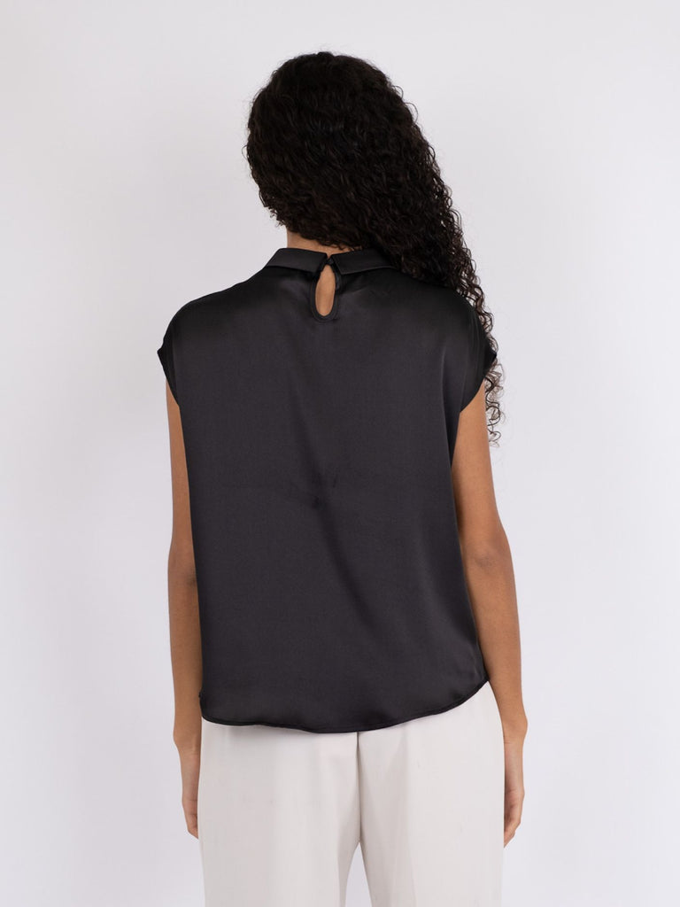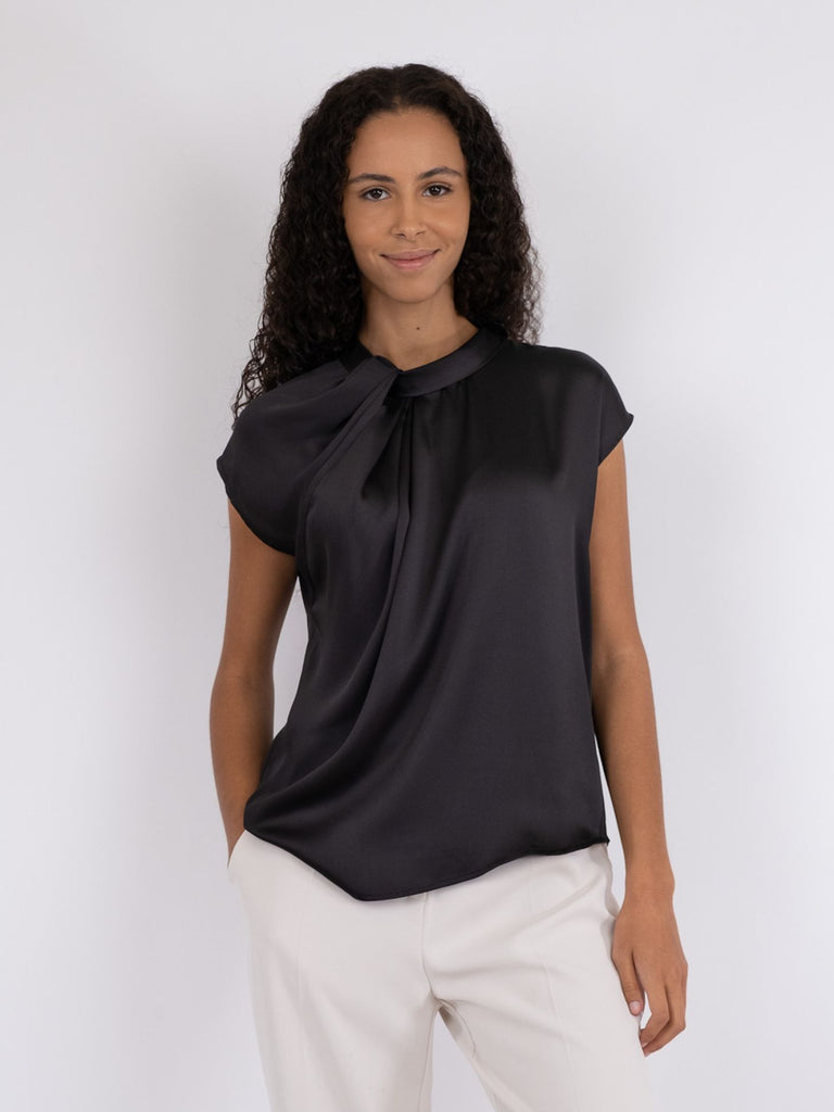 Neo Noir - Fleur Drapy Satin Blouse Black