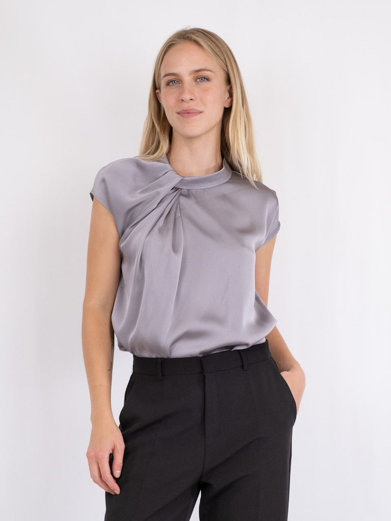 Neo Noir - Fleur Drapy Satin Blouse Grey