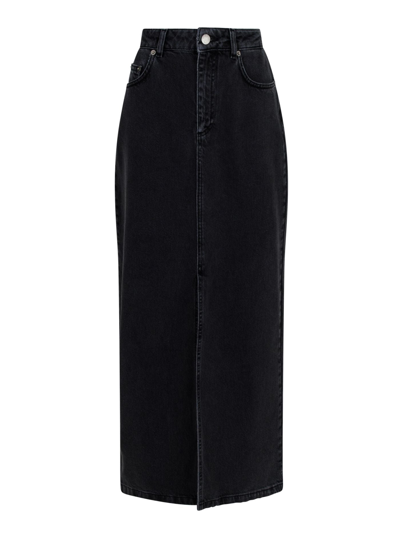 Lang denim nederdel fra Neo Noir i sort med et højt slids op foran. Perfekt til alle sommermånederne, hvor den kan styles med alle former for overdele alt efter vejr og lejlighed. Nederdelen har både lommer foran og bagpå, og slidset gør den nem at bevæge sig i.