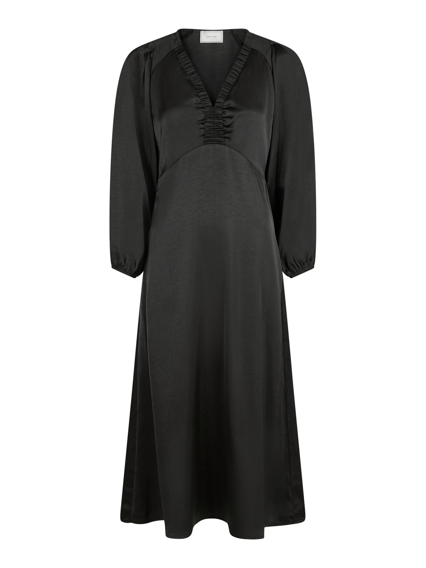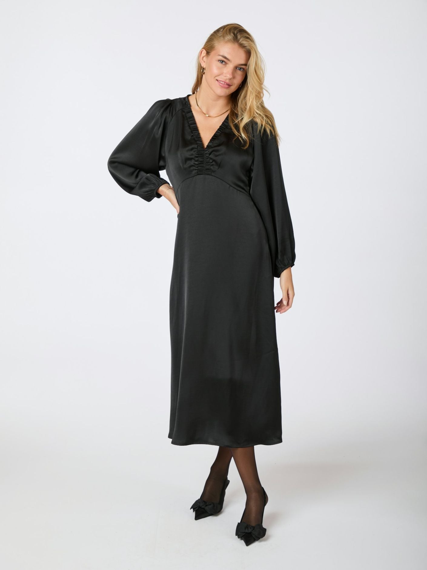 Fin langærmet maxi kjole fra Neo Noir. Kjolen er med elastik detalje langs halsudskæringen og er i en tung metervare, der falder smukt.