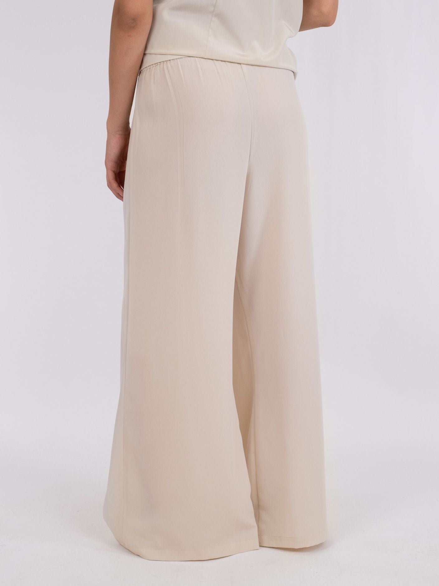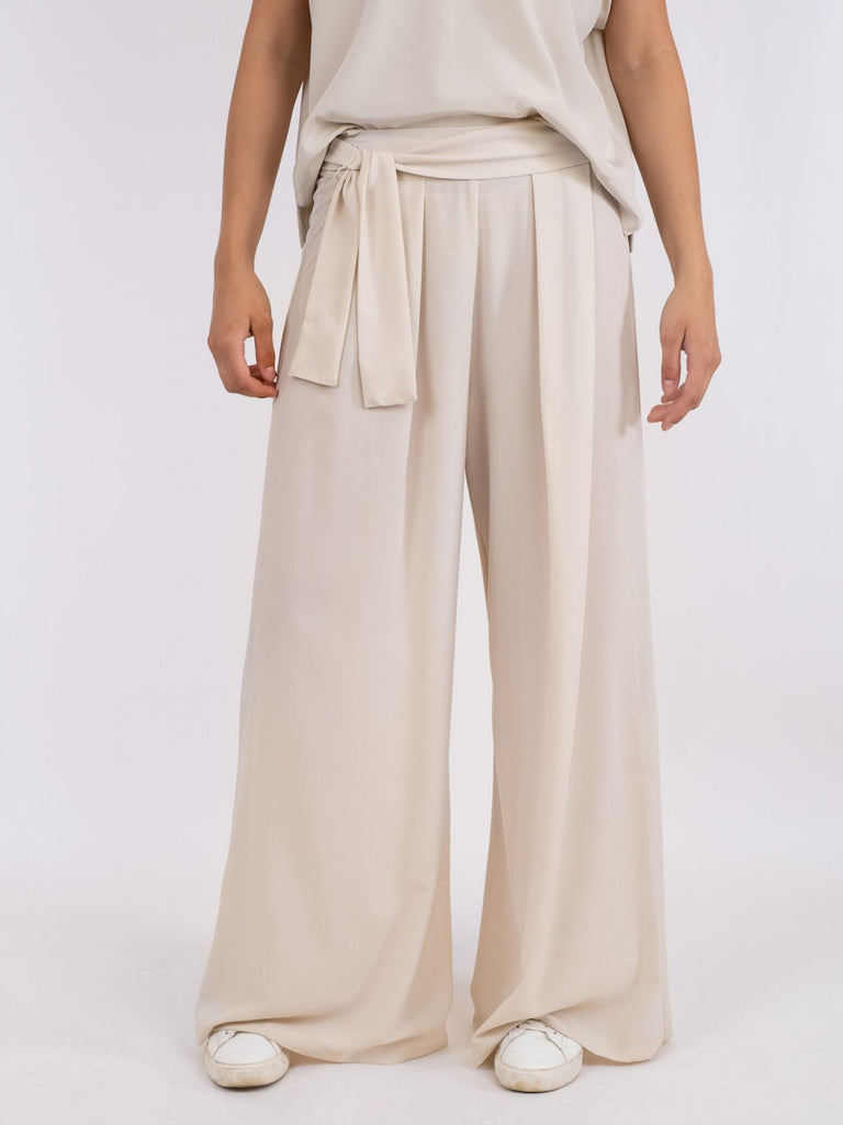 Den lækreste løse buks med vide ben og en let feminin kvalitet. Buksen har bindebånd og elastik i taljen, og kan styles både til hverdag og fest. '