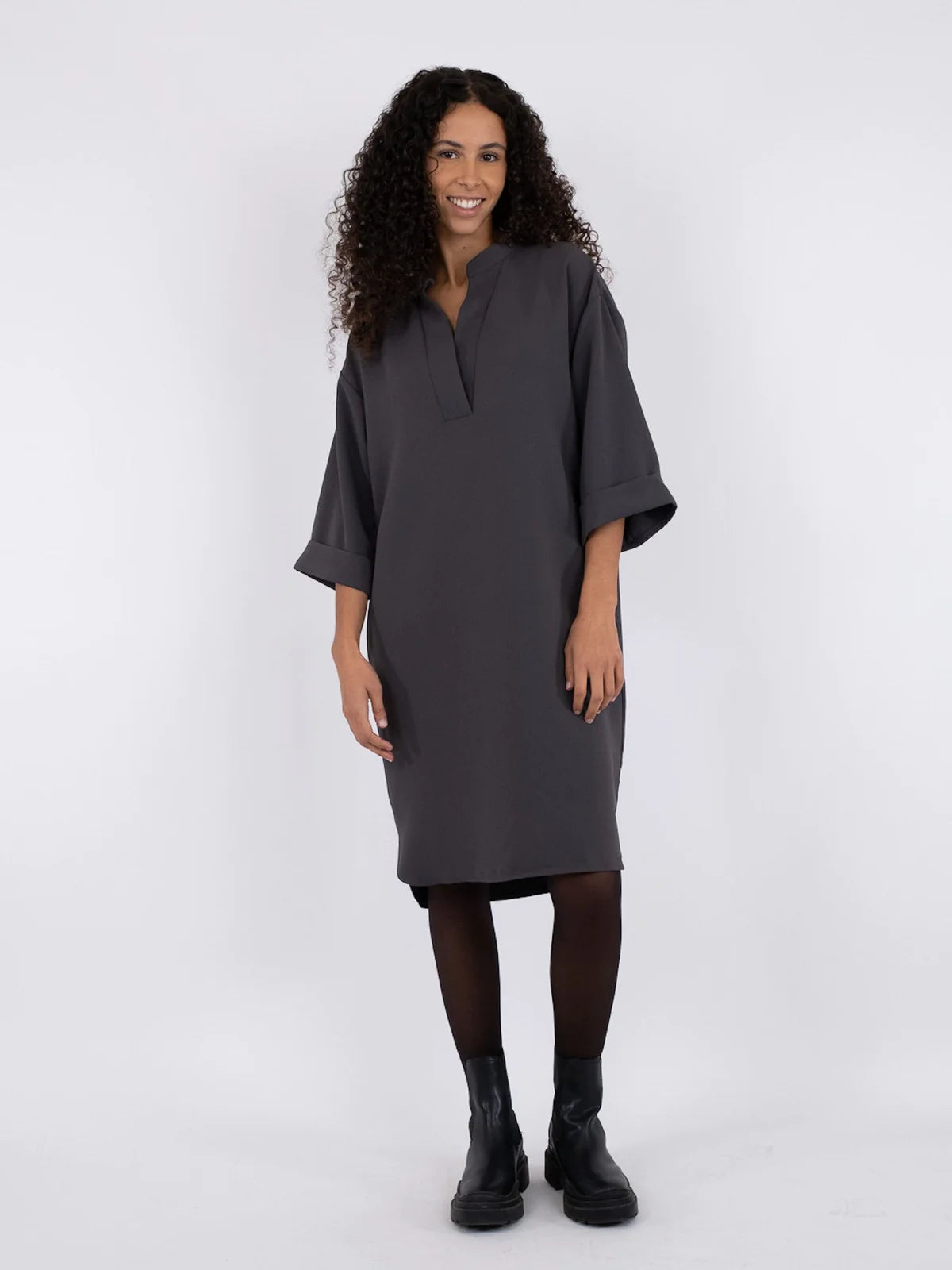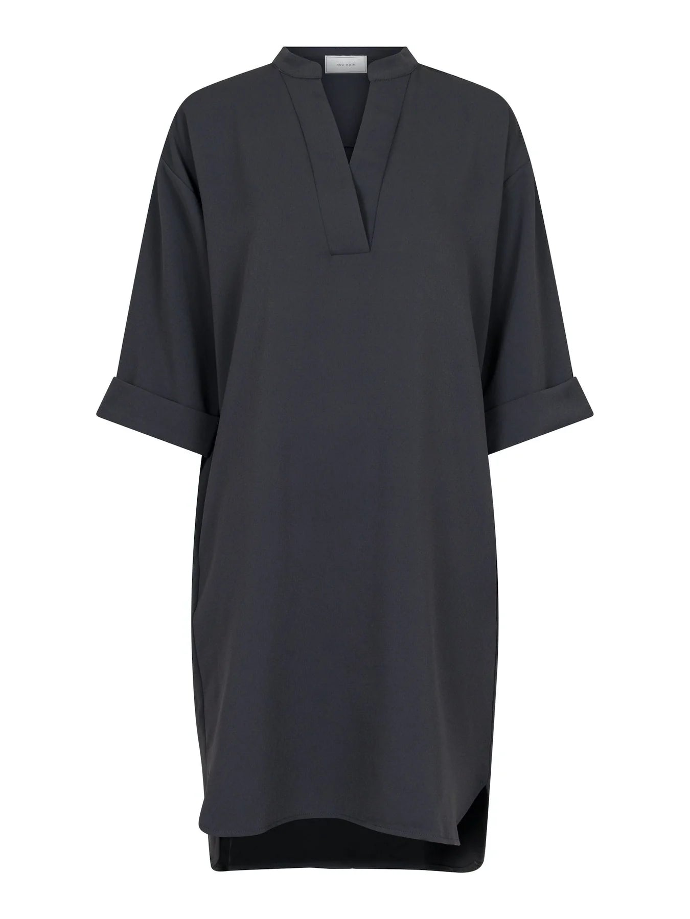 Cool kjole i en blød crepe kvalitet med åbning foran fra Neo Noir. Ærmerne har vidde og pasformen er boxy med lommer i siden.
