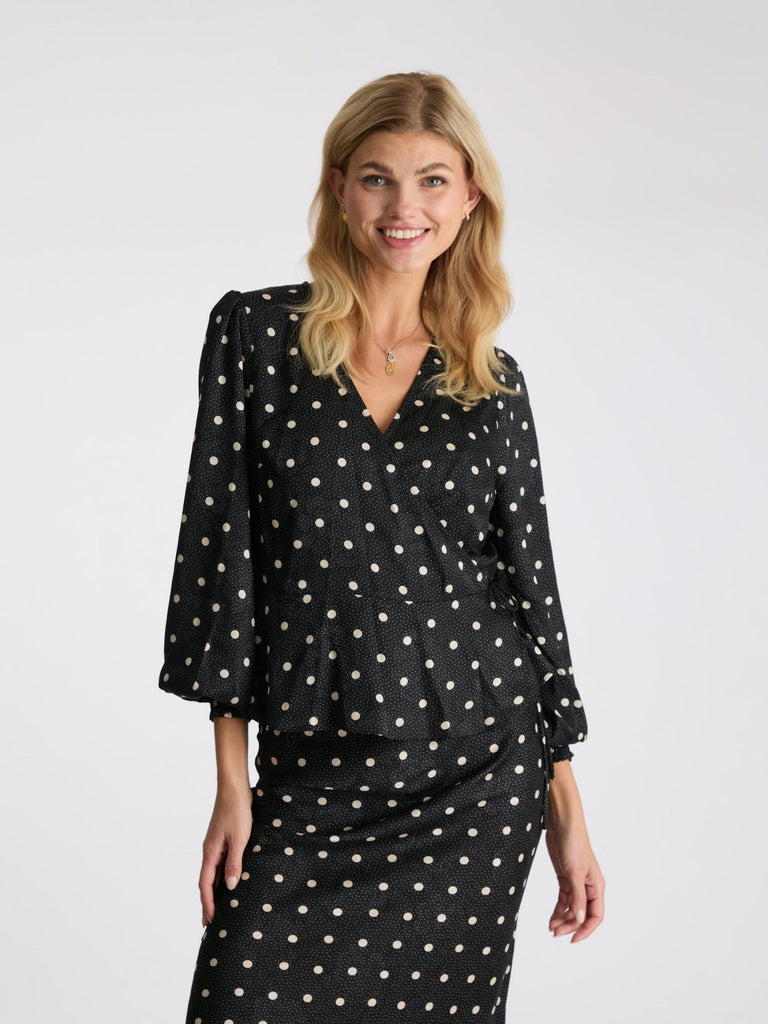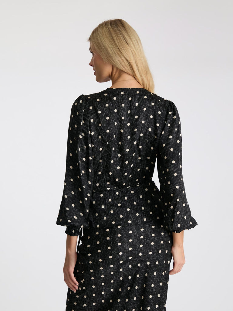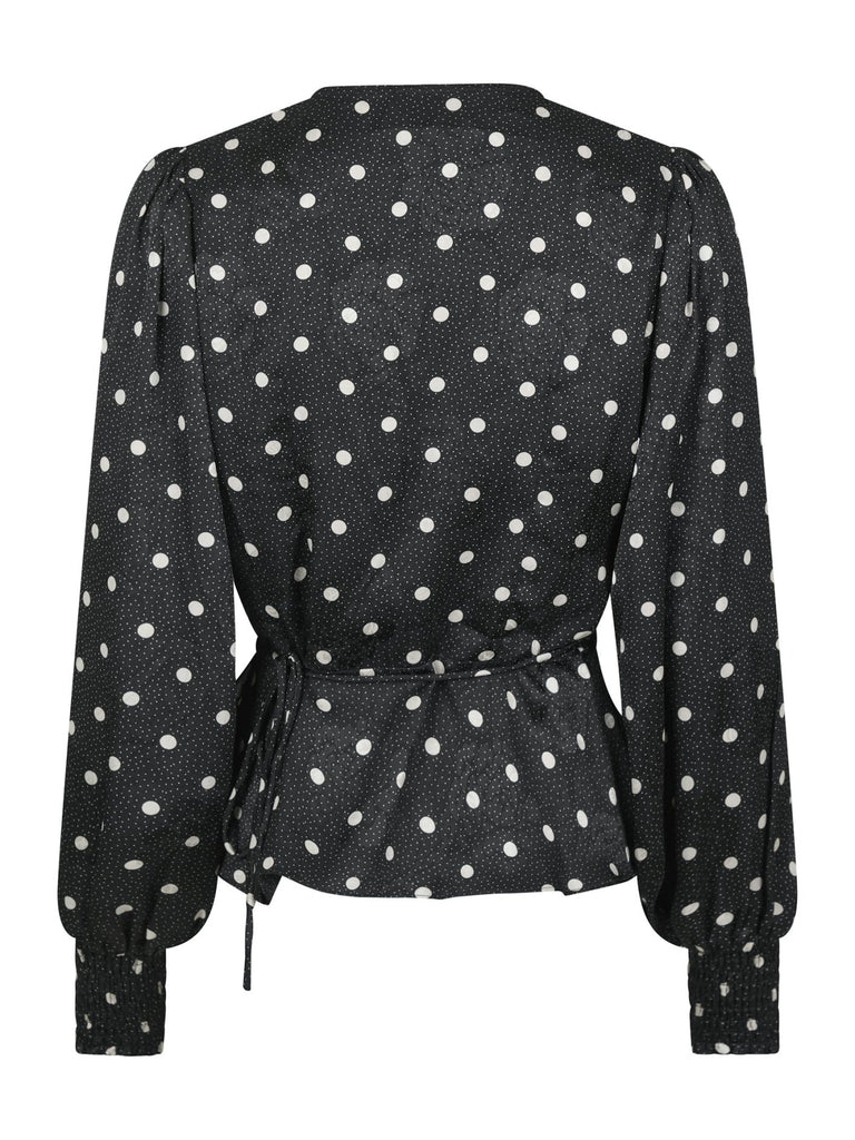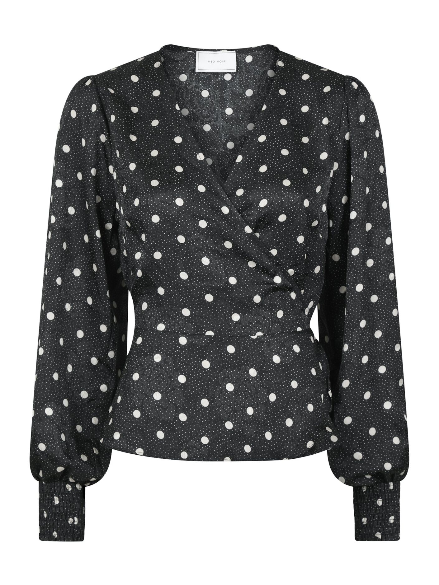 Fin langærmet bluse i et flot prikket print fra Neo Noir. Blusen er med bånd lukning i siden og har v-udskæring.