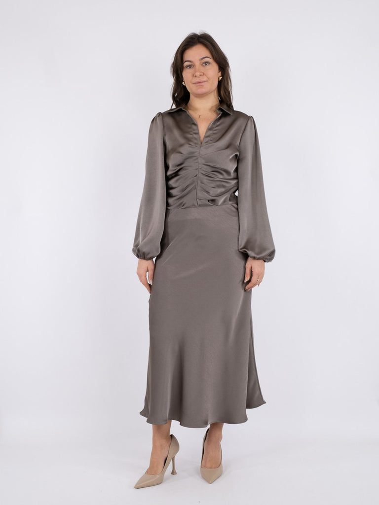 Neo Noir - Mille Heavy Sateen Blouse Warm Grey