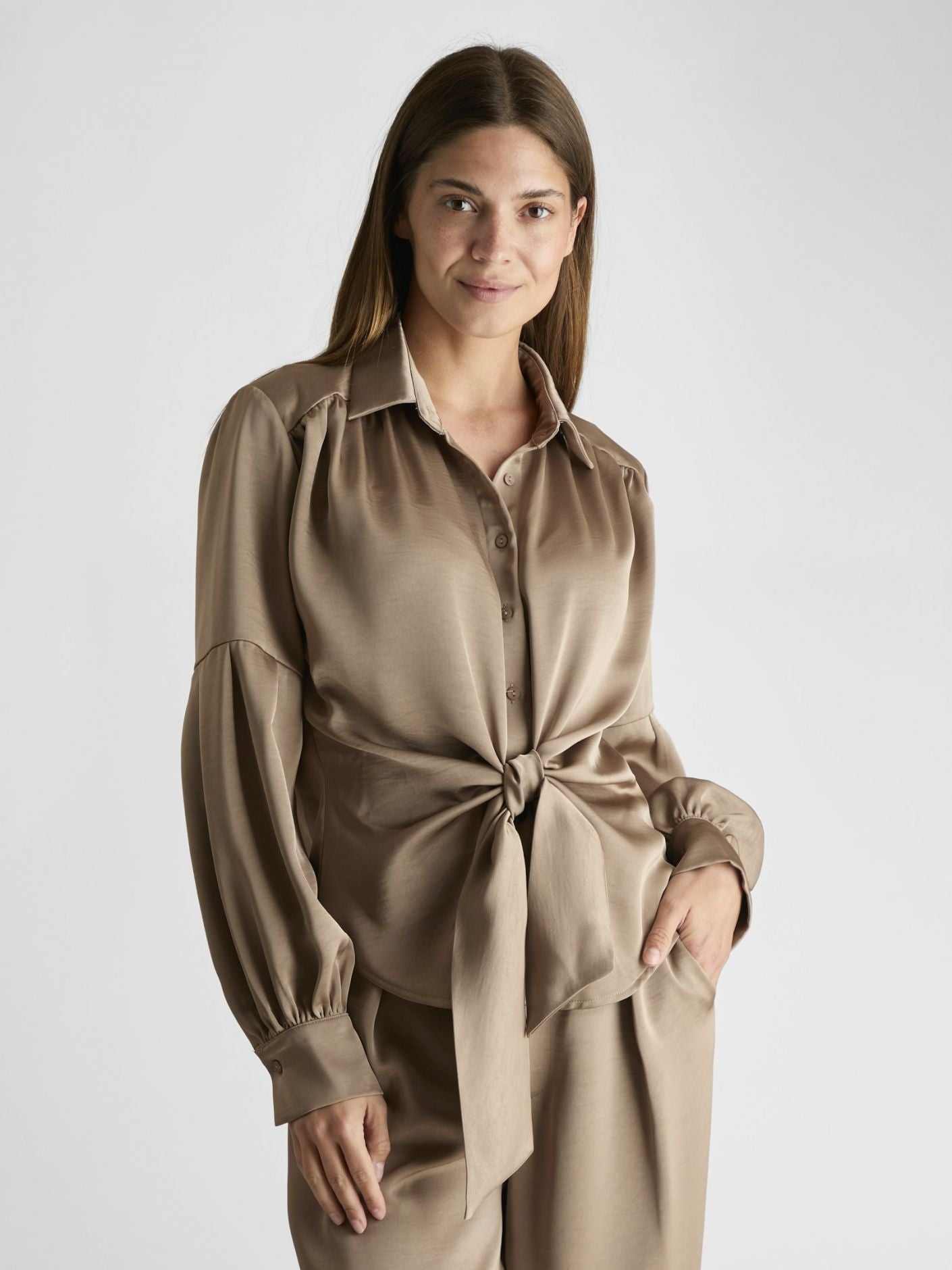 Neo Noir - Naja Satin Shirt Dark Taupe