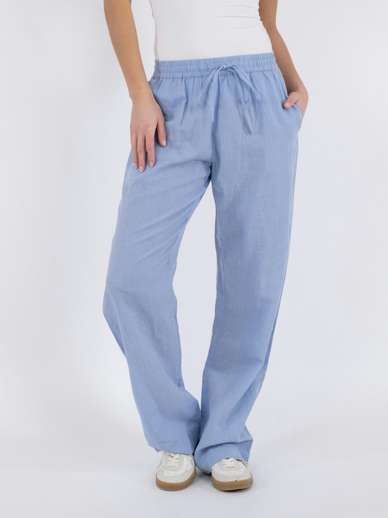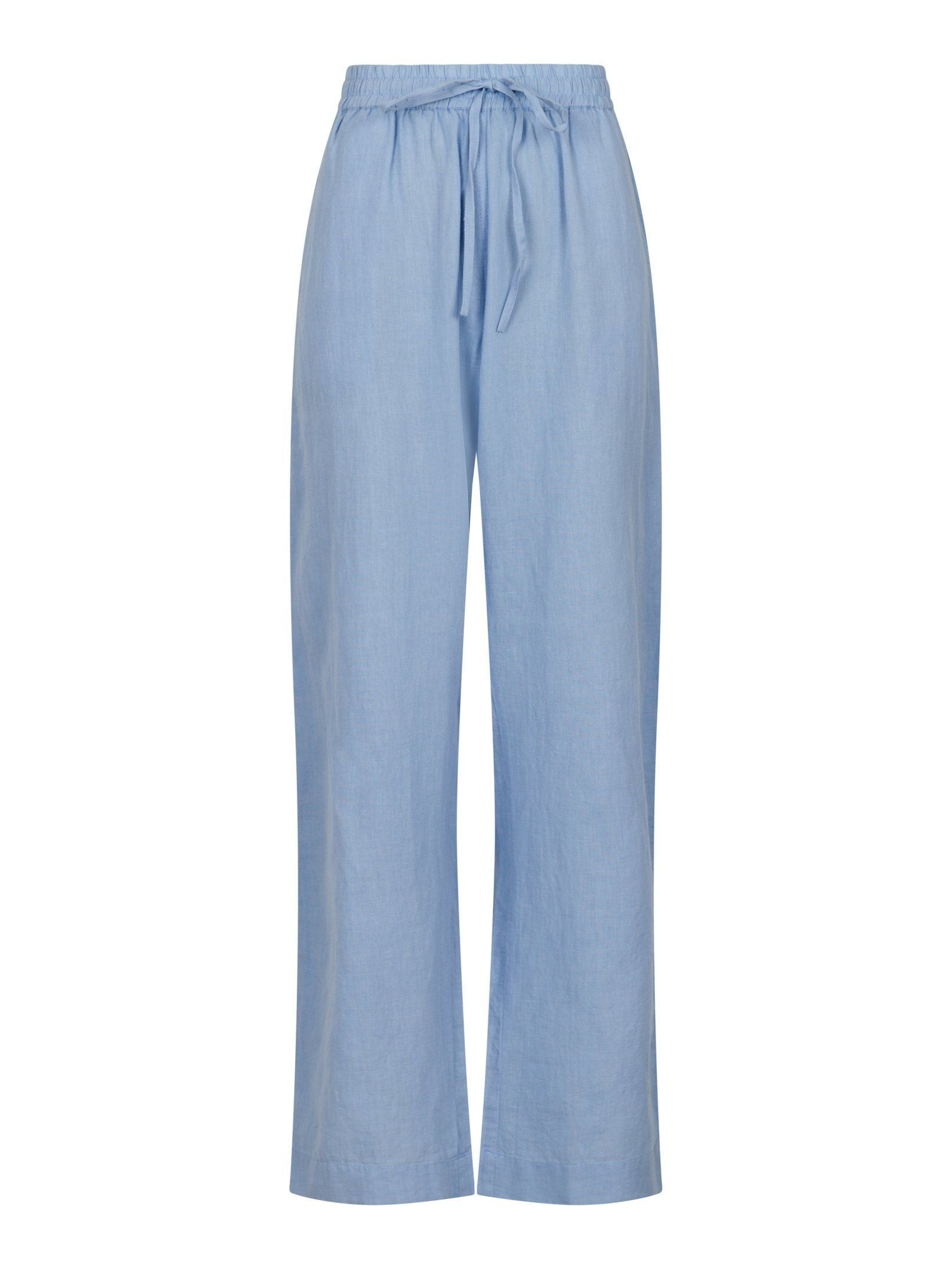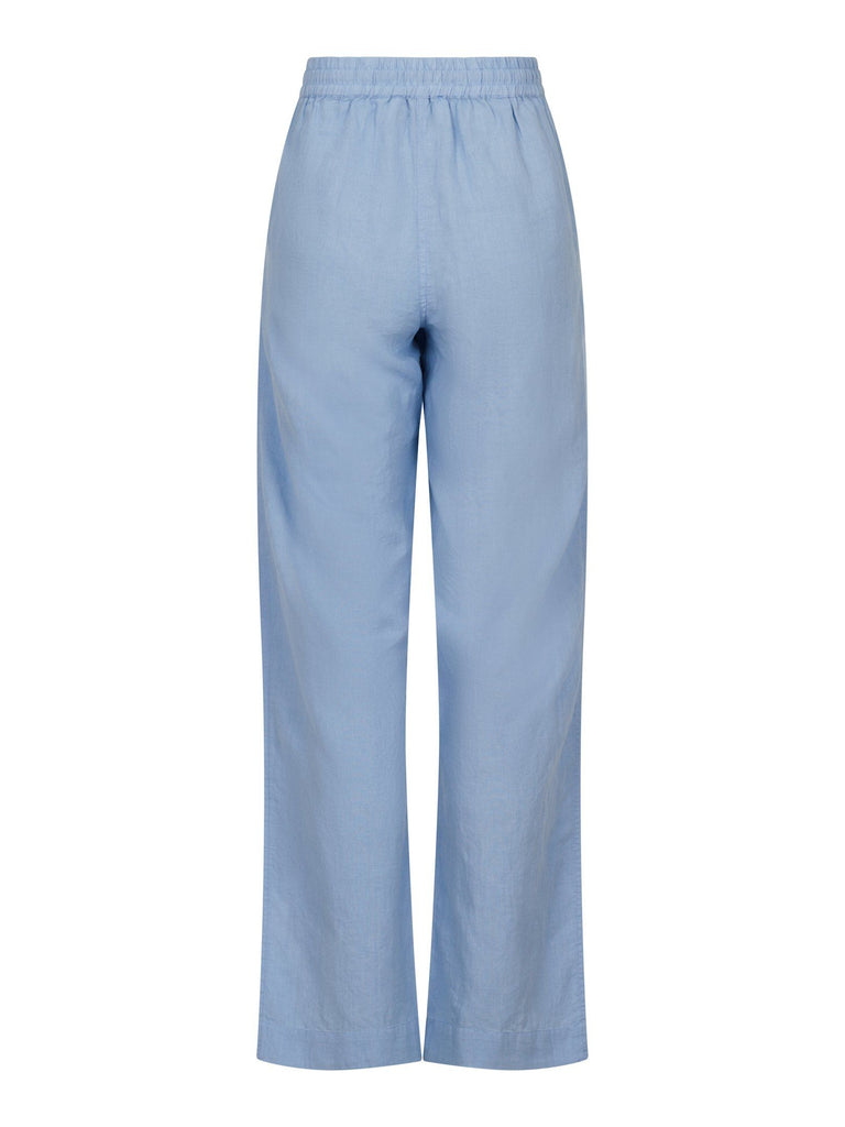 Lækre og cool bukser i hør-mix med brede ben og elastik i bindebånd i taljen og skrålommer