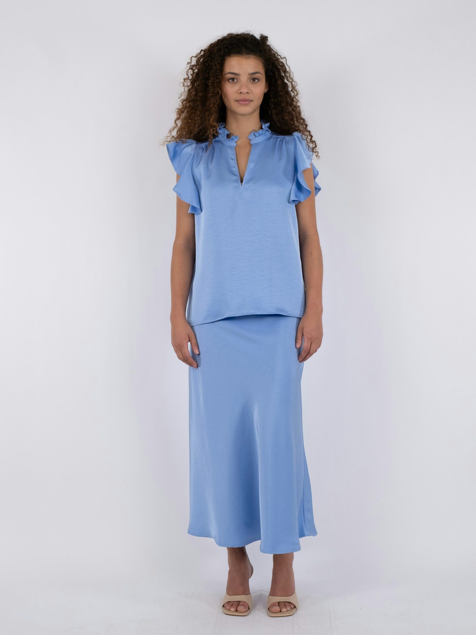 Neo Noir - Stella Heavy Sateen Blouse Dusty Blue