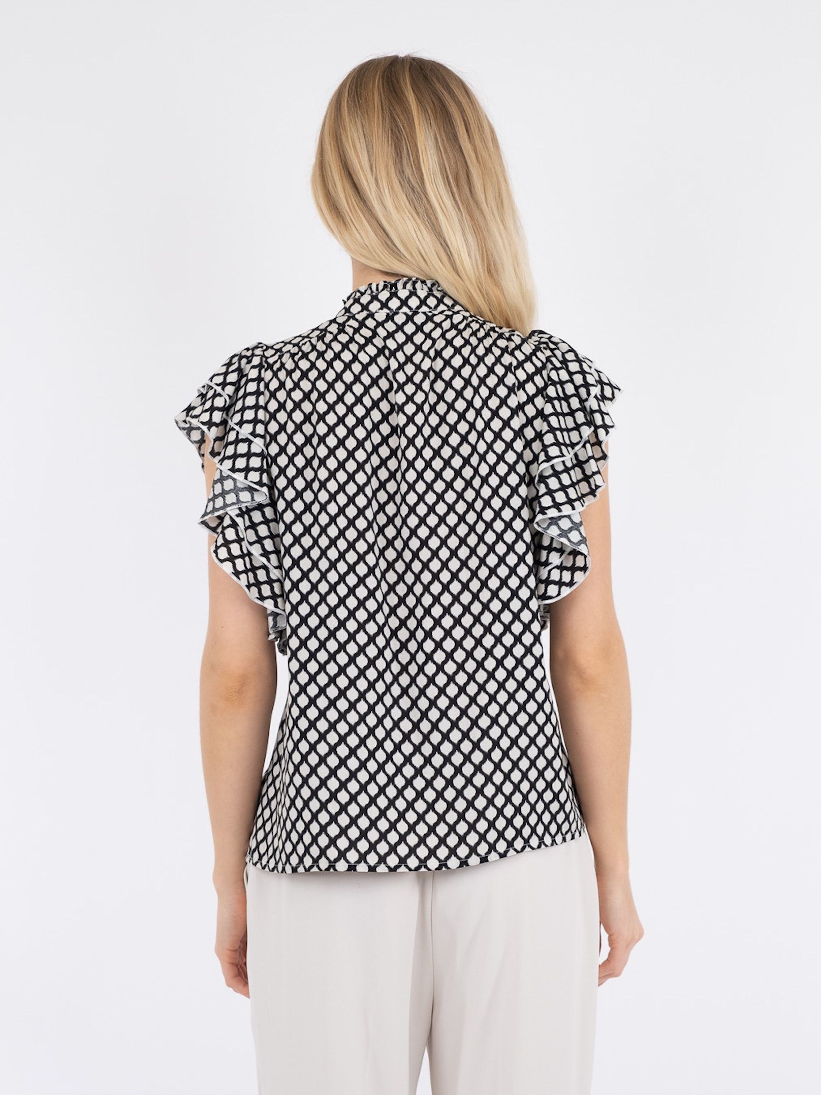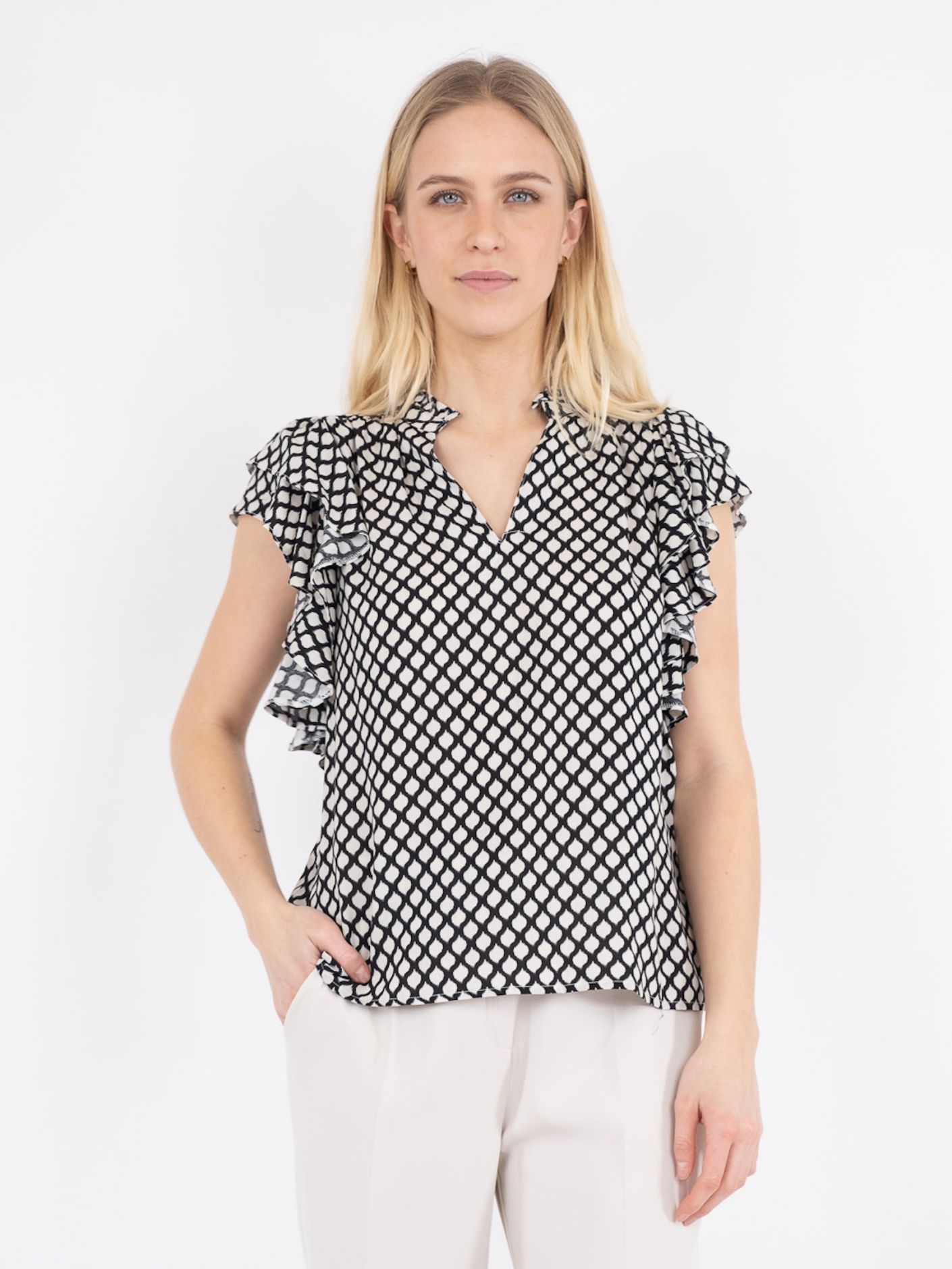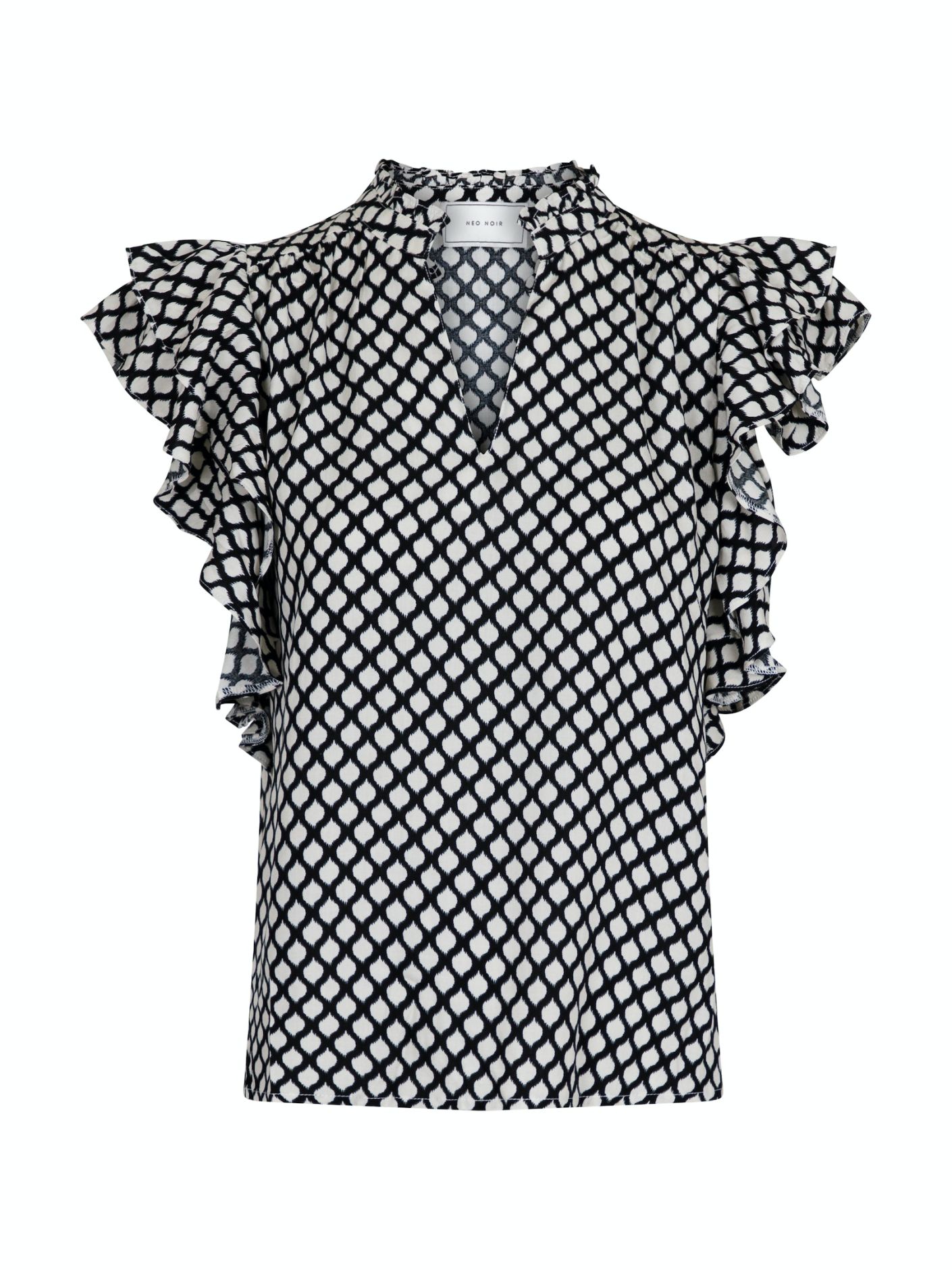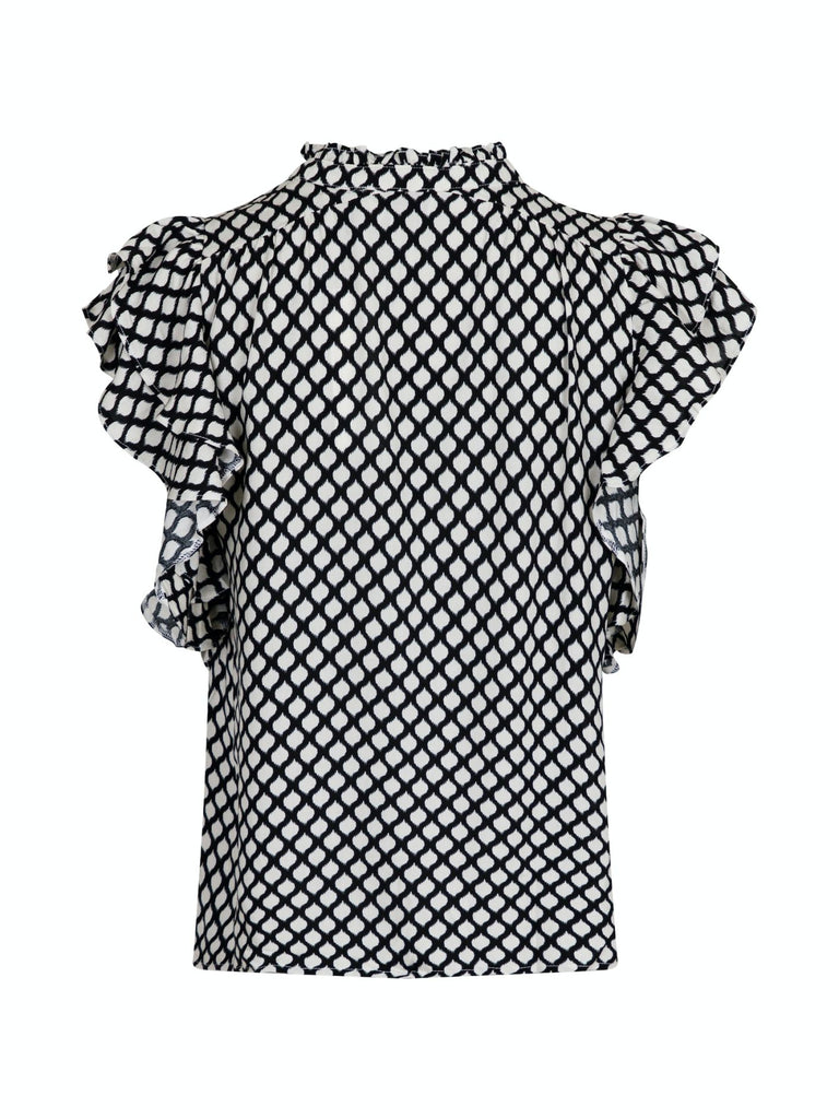 Feminin ærmeløs bluse i løs pasform. Blusen kommer i en lækker viscose kvalitet med et klassisk grafisk print.