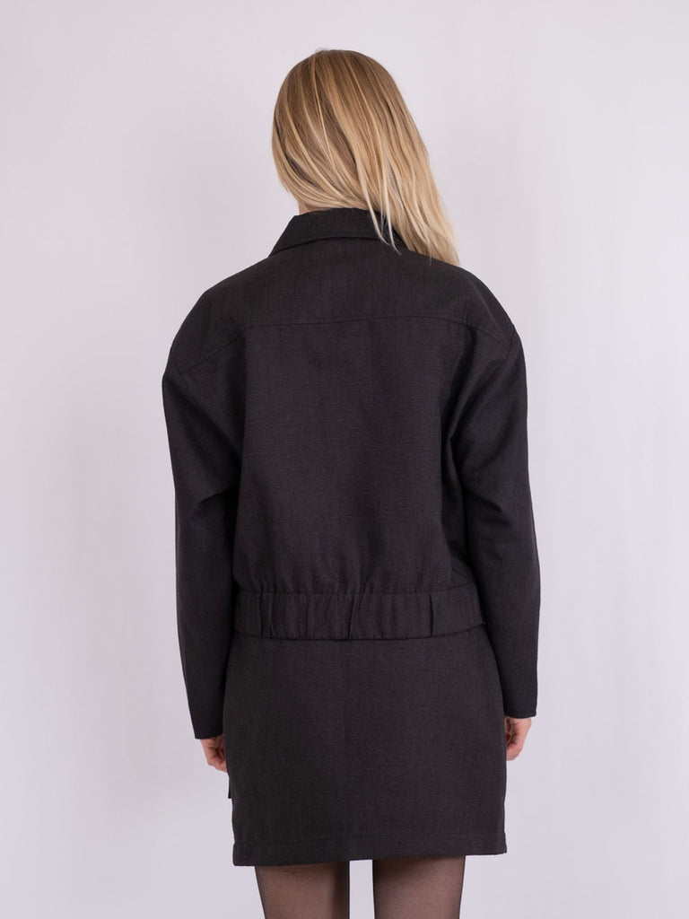 Fin kort jakke i en lækker kvalitet med struktur fra Neo Noir. Pasformen er boxy og jakken kommer med brystkommer og flipkrave. Modellen er 176 cm og bær er en størrelse 36