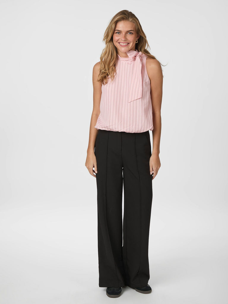 Fin top med en sløjfe omkring halsudskæringen og ballon effekt i bunden fra Neo Noir. Toppen kommer i en fin stribet kvalitet.