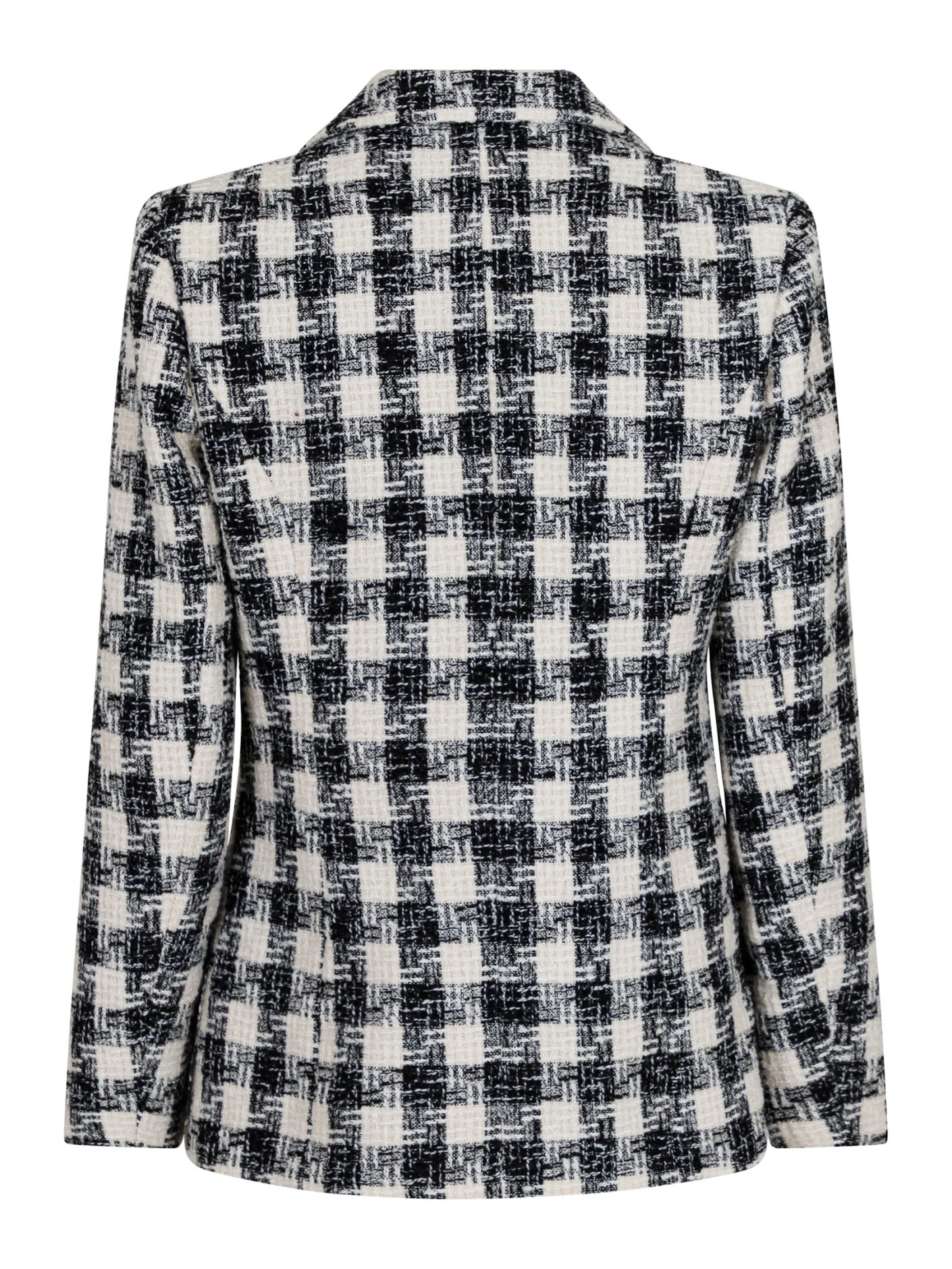 Super skøn boucle blazer i sort/hvid tern. Figursyet med 4 knapper.