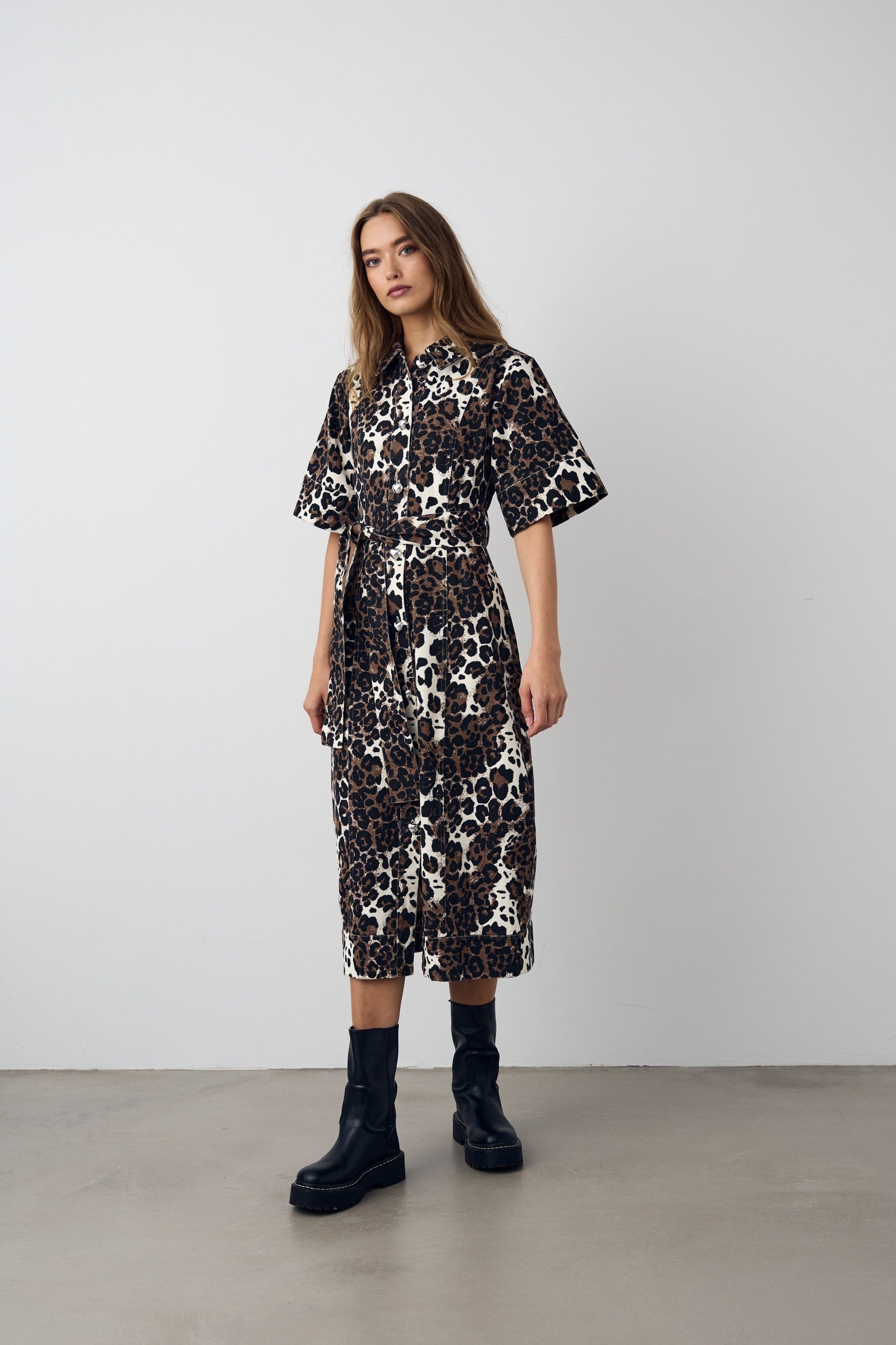 Virkelig cool kjole fra Noella i en lang model. Kjolen er i en lækker denimkvalitet, har let a-shape og bælte for markering af taljen. Kjolen lukkes med chunky hjerte-knapper.