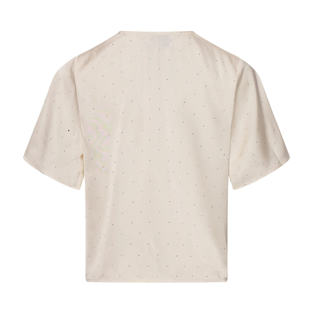 Skøn bluse fra Noella i off white med similisten. Blusen har v-udskæring, lille ærme og bindedetalje fortil, som laver en flot drapering og giver en smuk pasform.