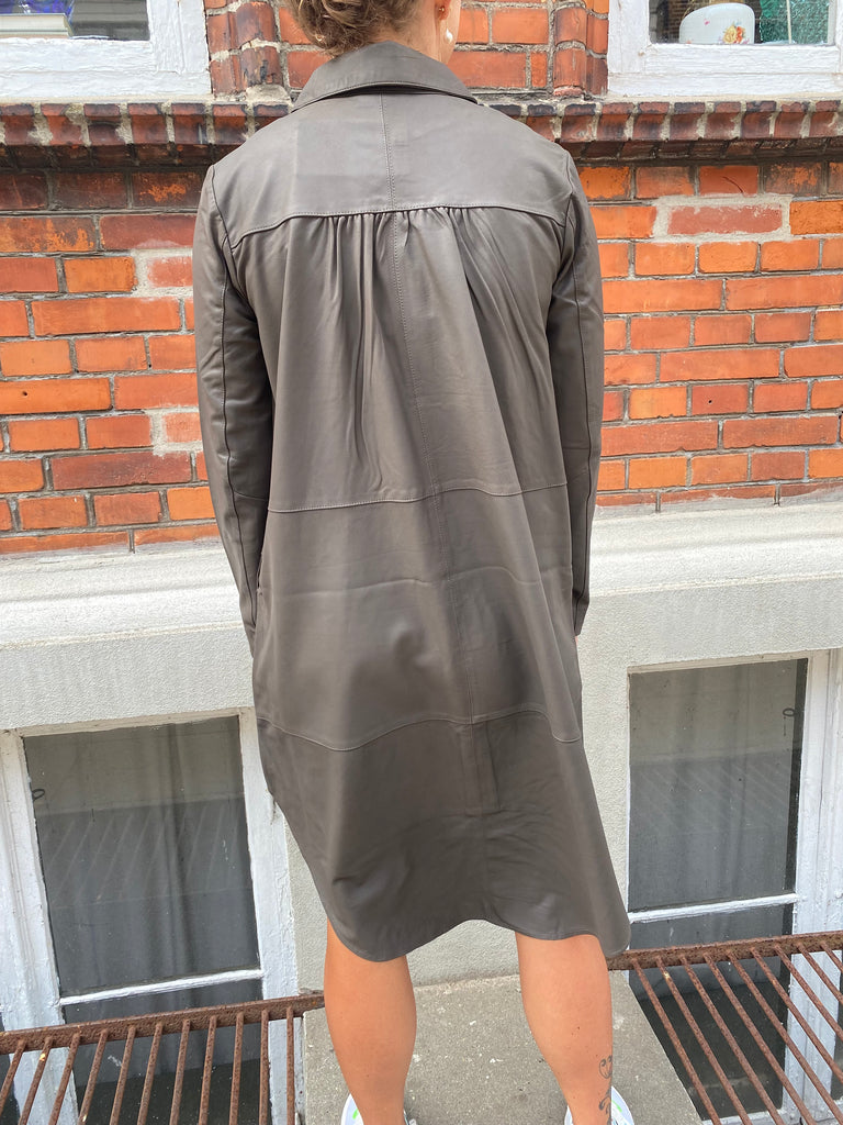 Cool oversize skjorte, som sagtens kan bruges som kjole. Kjolen er lidt længere bagtil.