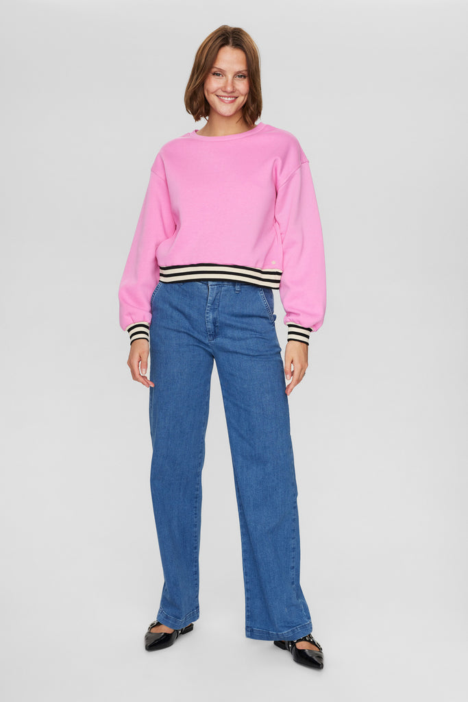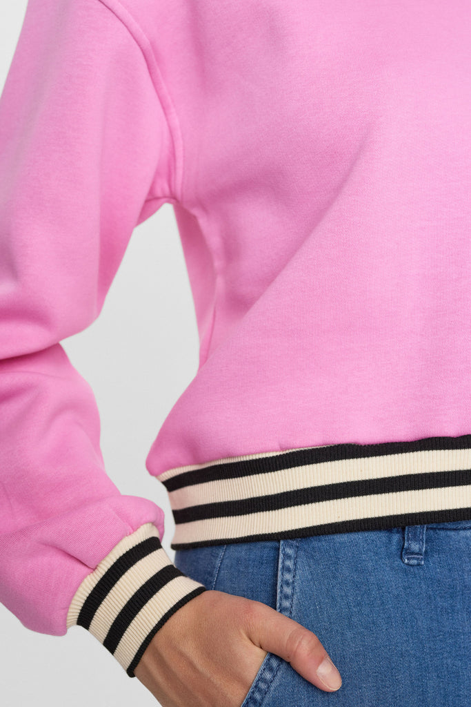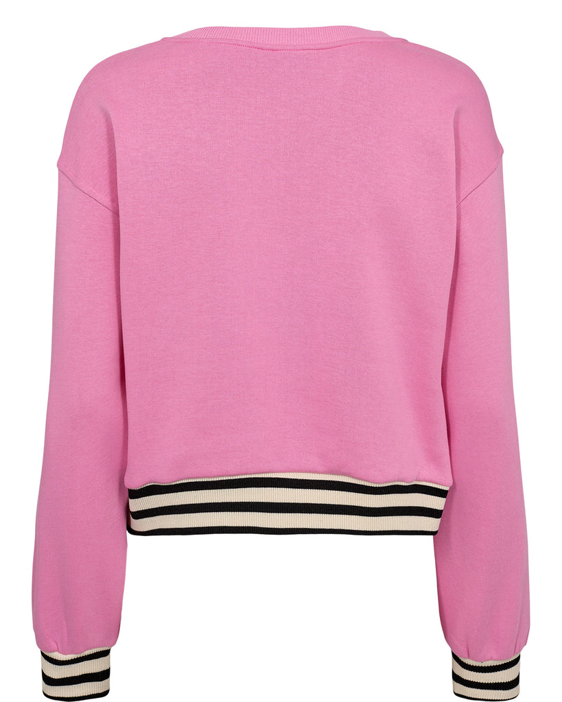 Cool sweatshirt fra Co' Couture i en flot pink farve. Sweatshirten har en afslappet pasform med et stilrent udtryk. Med semi cropped længde og dekorative elastik afslutning ved talje og håndled.