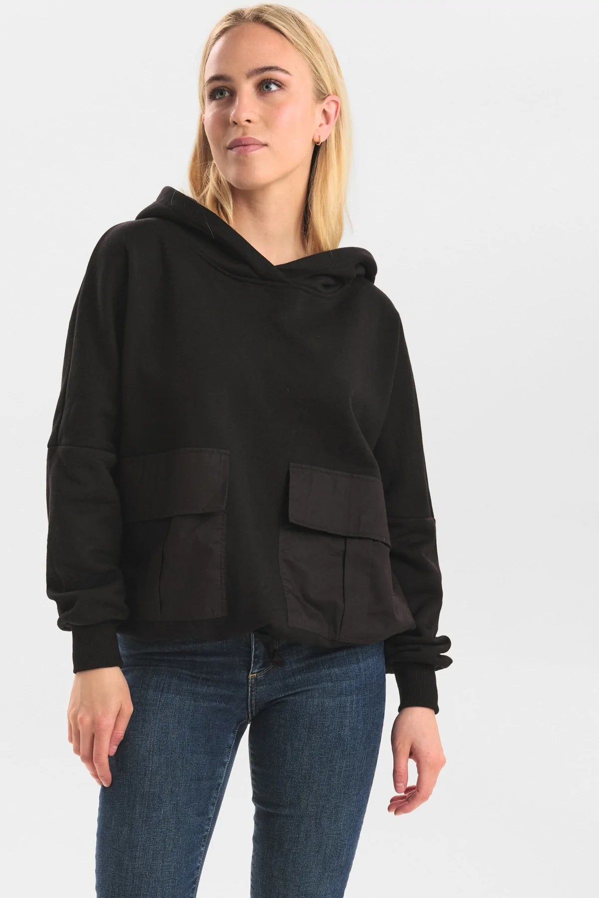 Super fed hoodie fra Nümph i sort. Hoodien har en oversize pasform med cool lommedetaljer fortil.