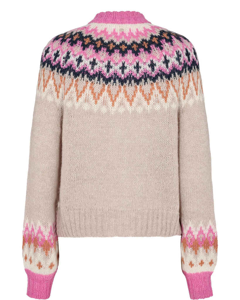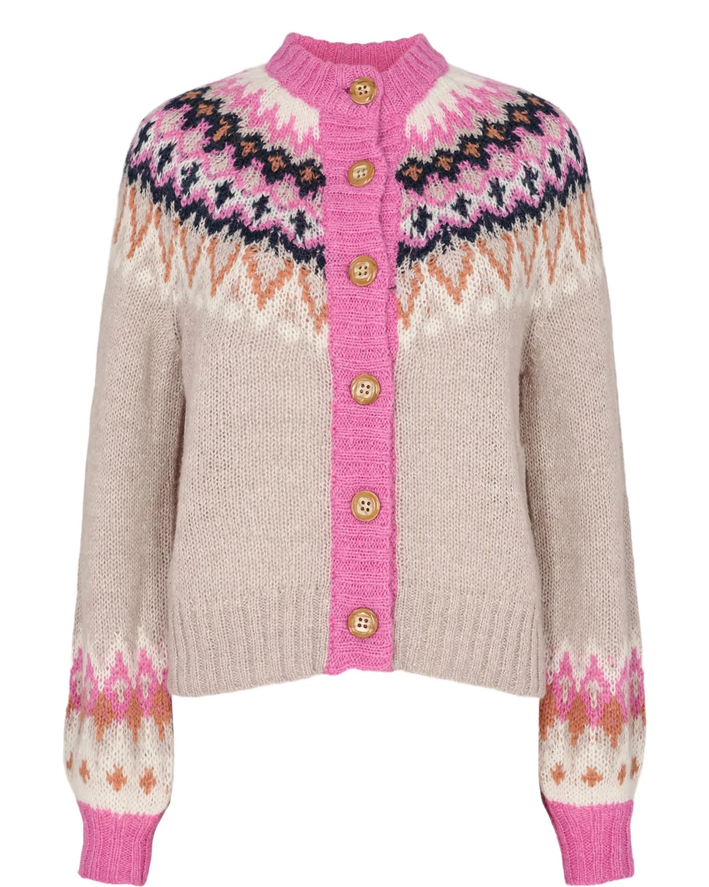 Lækker cardigan fra Nümph i lyserød og beige. Cardiganen er gennemknappet og med lange ærmer.