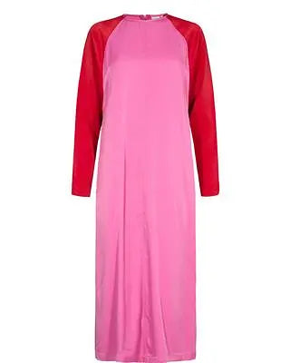 Skøn kjole fra Nümph i rød og lyserød. Kjolen har lange røde ærmer og lukkes med lynlås bagtil.