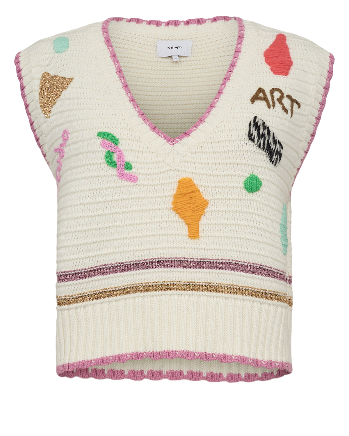 Sejeste pullover fra Nümph. Denne bluse er spækket med detaljer og fede farver.